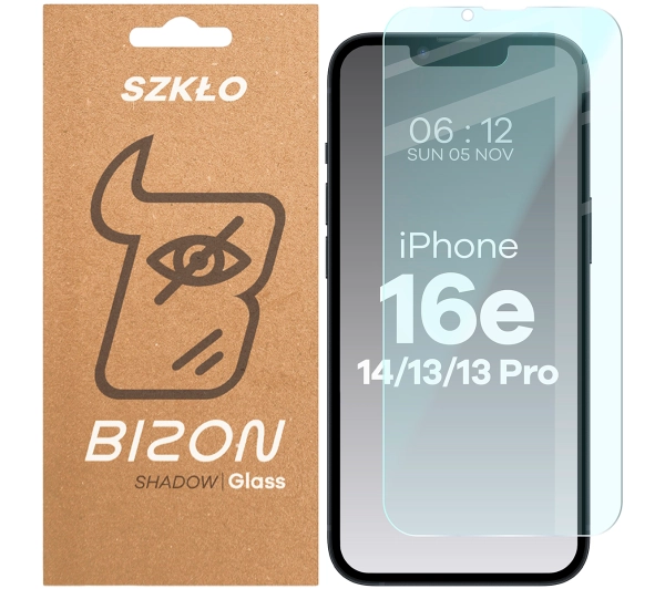 Szkło hartowane Bizon prywatyzujące Clear Shadow do iPhone 16e / 14 / 13 / 13 Pro przyciemniane