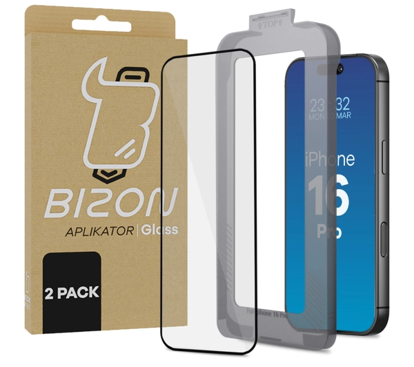 Szkło hartowane Bizon z ramką montażową Bizon Glass Aplikator do iPhone 16 Pro 2 sztuki