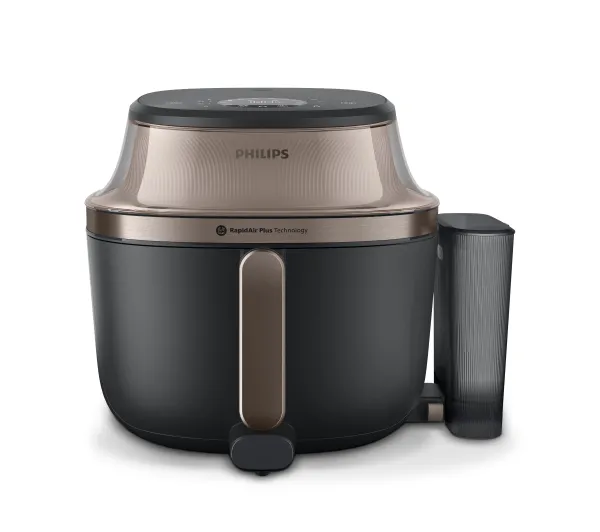 Funkcje dodatkowe: antypoślizgowe nóżki, aplikacja mobilna, automatyczne wyłączanie, okienko do poglądu, przepisy kulinarne w aplikacji, technologia Rapid Air Plus, termoizolowana obudowa, timer, wskaźnik zasilania, zegar cyfrowy