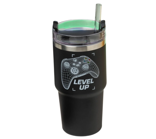 Opis: kubek termiczny ze słomką 600ml, 3-funkcyjna pokrywka słomka, otwór do picia lub pełne zamknięcie, oficjalny produkt Xbox
