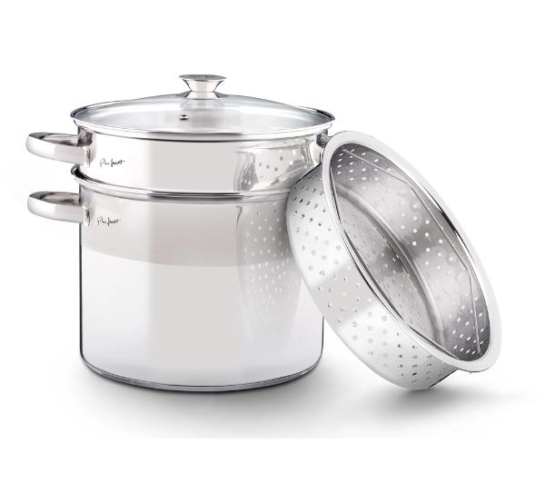 Zawartość: garnek, koszyk do gotowania na parze, pokrywka szklana, wkład do gotowania makaronu