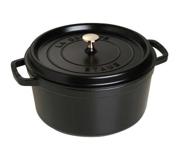 <p>ŻELIWO I CERAMIKA STWORZONE W ALZACJI.PODZIWIANE NA CAŁYM ŚWIECIE.</p><p>GARNEK ŻELIWNY OKRĄGŁY STAUB</p><h2>GARNEK ŻELIWNY OKRĄGŁY STAUB</h2><p>Okrągły, żeliwny garnek Staub to idealne naczynie do duszenia, pieczenia i gotowania pysznych dań. Dzięki specjalnej pokrywce potrawa jest doskonale nawilżona a jej smak niepowtarzalny!</p><p>Duże, wygodne uchwyty po jego obu stronach oraz duża gałka znajdująca się na pokrywce umożliwiają mocny i pewny chwyt, nawet w rękawicach kuchennych. Można go stosować na wszystkich źródłach ciepła, w tym na indukcji oraz w piekarniku.</p><p>Garnek żeliwny Staub, dostępny w różnych wariantach kolorystycznych, rozmiarach i pojemnościach to idealne naczynie do przygotowywania i serwowania potraw.</p><h2>WYMIARY</h2><table> <tbody> <tr> <td>Średnica:</td> <td>14 cm</td> </tr> <tr> <td>Średnica dna:</td> <td>10.8 cm</td> </tr> <tr> <td>Pojemność:</td> <td>800 ml</td> </tr> <tr> <td>Długość:</td> <td>19 cm</td> </tr> <tr> <td>Szerokość:</td> <td>14 cm</td> </tr> <tr> <td>Wysokość:</td> <td>12 cm</td> </tr> <tr> <td>Wysokość (bez pokrywki):</td> <td>7.6 cm</td> </tr> <tr> <td>Masa:</td> <td>1.8 kg</td> </tr> </tbody></table><p>uchwyty umożliwiająmocny i pewny chwyt</p><p>specjalnie opracowanapokrywka</p><h2>POKRYWKA Z SYSTEMEM DESZCZOWNICY</h2><p>Olbrzymią zaletą żeliwnego garnka Staub jest specjalnie opracowana pokrywa z systemem deszczownicy zapewniająca idealne nawilżenie potrawy. Para wodna znajdująca się w garnku nie spływa po jego ściankach - dzięki wypustkom znajdującym się na spodzie pokrywki skrapla się wprost na przygotowywaną potrawę. Zachowujemy przy tym maksimum smaku, aromatu i estetyki dania.</p><p>Specjalna struktura aromatycznego deszczu zapewniająca ciągły cykl nawilżenia i naturalne samokonserwowanie żywności.</p><h2>NIEPRZYWIERAJĄCA POWŁOKA NON-STICK</h2><p>Wewnętrzna powłoka nieprzywierająca sprawia, że jedzenie nie przywiera a garnek jest łatwy w czyszczeniu. Kolorowa, zewnętrzna emalia zapewnia trwałość oraz nadaje naczyniu niepowtarzalny wygląd.</p><h2>GARNEK ŻELIWNY OKRĄGŁY STAUB</h2><p>Wszechstronne zastosowanie - można w nim dusić, gotować lub piec potrawy</p><p>Specjalnie opracowana deszczownica w pokrywce zapewnia ciągłe nawilżenie potrawy</p><p>Idealny do powolnego gotowania mięsa, ryb czy warzyw by wydobyć ich niezwykłą soczystość i delikatność</p><p>Nadaje się do wszystkich rodzajów płyt grzewczych, w tym również indukcyjnych</p><p>Można używać w piekarniku</p><p>30 lat gwarancji</p><h2>SPECYFIKACJA</h2><p>Przeznaczenie:Do gotowania</p><p>Uchwyt:Żeliwny</p><p>Powłoka non-stick:Tak</p><p>Rodzaj powłoki:Emaliowana</p><p>Odporność termiczna:240°C</p><p>Materiał:Żeliwo</p><p>Przystosowanie do kuchenek:</p><p>Przystosowanie do piekarnika: TAK</p><p>Thermopoint</p><p>Nie</p><p>Czyszczenie przy użyciu zmywarek</p><p>Tak</p><p>Regulacja pary</p><p>Brak</p><h2>LINIA: LA COCOTTE</h2>