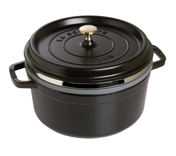 <p>ŻELIWO I CERAMIKA STWORZONE W ALZACJI.PODZIWIANE NA CAŁYM ŚWIECIE.</p><p>GARNEK ŻELIWNY OKRĄGŁY Z WKŁADEM STAUB</p><h2>GARNEK ŻELIWNY OKRĄGŁY Z WKŁADEM STAUB</h2><p>Dzięki żeliwnemu garnkowi z wkładem do gotowania na parze Staub możesz gotować różne potrawy w tym samym czasie. Faszerowane papryki, roladki z kapusty, śródziemnomorskie ratatouille, desery, świeży chleb i wiele innych - w tym praktycznym, żeliwnym garnku można przygotować wiele przepysznych potraw.</p><p>Wysokogatunkowe żeliwo zapewnia optymalną dystrybucję ciepła a wewnętrzna, nieprzywierająca powłoka sprawia, że czyszczenie garnka nie przysparza żadnych problemów.</p><p>Garnek żeliwny Staub, dostępny w różnych wariantach kolorystycznych, może być użytkowany na wszystkich źródłach ciepła, w tym również na kuchence indukcyjnej i w piekarniku.</p><h2>WYMIARY</h2><table> <tbody> <tr> <td>Średnica:</td> <td>26 cm</td> </tr> <tr> <td>Średnica dna:</td> <td>21.7 cm</td> </tr> <tr> <td>Pojemność:</td> <td>5.25 ltr</td> </tr> <tr> <td>Długość:</td> <td>33 cm</td> </tr> <tr> <td>Szerokość:</td> <td>26 cm</td> </tr> <tr> <td>Wysokość:</td> <td>19 cm</td> </tr> <tr> <td>Wysokość (bez pokrywki):</td> <td>11.8 cm</td> </tr> <tr> <td>Masa:</td> <td>6.67 kg</td> </tr> </tbody></table><p>wkład do gotowaniana parze ze stalinierdzewnej</p><p>pokrywka z systememdeszczownicy</p><h2>GARNEK ŻELIWNY OKRĄGŁY STAUB</h2><p>Idealny do jednoczesnego duszenia i gotowania na parze</p><p>Wkład do gotowania na parze wykonany ze stali nierdzewnej 18/10</p><p>Specjalnie opracowana deszczownica w pokrywce zapewnia ciągłe nawilżenie potrawy</p><p>Nadaje się do wszystkich rodzajów płyt grzewczych, w tym również indukcyjnych i piekarnika</p><p>30 lat gwarancji</p><h2>WKŁAD DO GOTOWANIA NA PARZE</h2><p>Cechą szczególną tego garnka jest wkład do gotowania na parze wykonany ze stali nierdzewnej, który umożliwia jednoczesne duszenie i gotowanie dań, dzięki wykorzystaniu unoszącej się pary wodnej.</p><h2>SPECYFIKACJA</h2><p>Przeznaczenie:Do gotowania</p><p>Materiał:Żeliwo</p><p>Rodzaj powłoki:Emaliowana</p><p>Uchwyt:Żeliwny</p><p>Powłoka non-stick:Tak</p><p>Odporność termiczna:240°C</p><p>Przystosowanie do kuchenek:</p><p>Przystosowanie do piekarnika: TAK</p><p>Thermopoint</p><p>Nie</p><p>Czyszczenie przy użyciu zmywarek</p><p>Tak</p><p>Regulacja pary</p><p>Brak</p><h2>LINIA: LA COCOTTE</h2>