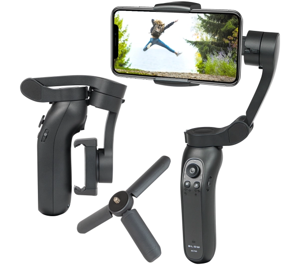 <h2>Blow BG700 - GIMBAL SKŁADANY 3 OSIOWY</h2><p>Składany gimbal 3-osiowy z czterema trybami pracy, obsługą smartfonów do 7 cali i możliwością używania podczas ładowania. W zestawie tripod, wsparcie QuickCharge, natywnego aparatu telefonu oraz dedykowana aplikacja rozszerzająca funkcje.</p><h3>Śledzenie twarzy i obiektów</h3><p>Gimbal wspiera funkcję śledzenia twarzy i obiektów, np. podczas prowadzenia transmisji na żywo.</p><h3>Możliwości aplikacji Gimbal Pro</h3><p>Aplikacja pozwala tworzyć ujęcia takie jak dolly zoom, Inception Mode, timelapse, slow motion czy panoramy, a także szybko przełączać kamery i płynnie zoomować. Wbudowana funkcja Beauty poprawia wygląd końcowego materiału.</p><h3>Możliwości gimbala Blow</h3><p>Gimbal zapewnia trójosiową stabilizację i może działać podczas ładowania. Sprawdza się w sporcie, podróży i vlogach. Pracuje do 5 godzin, szybko się ładuje i składa się jednym ruchem, zajmując minimalną ilość miejsca.</p><h3>Stabilizacja obrazu dla smartfonów</h3><p>Gimbal to urządzenie elektroniczne, które stabilizuje obraz podczas filmowania. Wyposażony w żyroskop, silniczki i czujniki, kompensuje ruchy kamery lub aparatu. Gimbal Blow obsługuje smartfony do 7 cali o przekątnej do 180 mm, szerokości 55–90 mm i grubości do 9,5 mm. Maksymalny udźwig urządzenia to 280 g.</p>