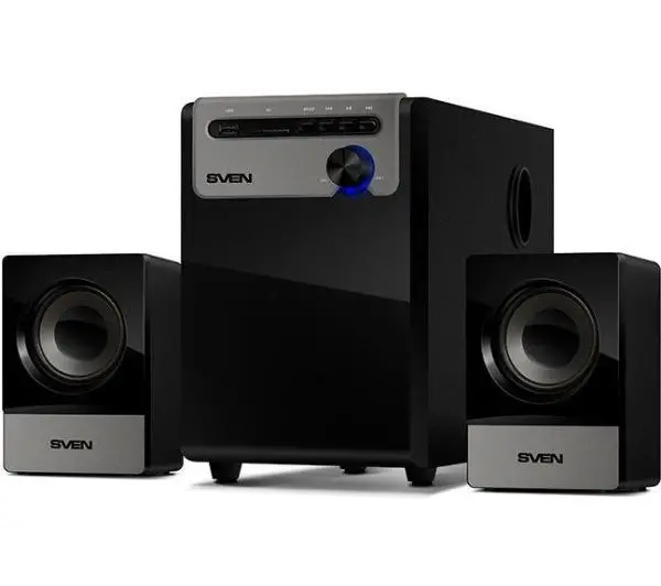 <h2>Poznaj model MS-110 i przenieś dźwięk na wyższy poziom</h2> 10W mocy<p>Czysty, mocnyi nasycony dźwięk</p> Dowolne źródło dźwięku Głośniki są kompatybilnez komputerami, odtwarzaczamimultimedialnymi, smartfonamii innymi źródłami dźwięku<p> </p> Standard 2.1<p>Idealne do muzykifilmów i gier</p> Więcej możliwości<p>Wejście USBi czytnik kart SD</p><h2>Komfort użytkowania</h2><p>Zestaw posiada przyciski sterujące i pokrętło głośności na froncie głónego głośnika. Obok znajduje się wbudowany odtwarzacz plików audio z pendrive lub karty SD, co sprawaia, że MS-110 może działać jako niezależny zestaw. Do odtwarzania muzyki z tych nośników nie ma konieczności podłączania zestawu do komputera cz innych urządzeń.</p><p>Pomimo swoich niewielkich rozmiarów SVEN MS-110 ma niski i głęboki bas, który zaskakuje jakością. Jest to możliwe dzięki zastosowaniu oddzielnego 5-watowego subwoofera. Pokrętło regulacji basu znajduje się na froncie głównego głośnika, zaraz obok pokrętła regulacji głośności.</p><h2>Czysta, pełna moc</h2><p>Subwoofer o mocy 5 W zapewni zaskakująco głębokie doznania dźwiękowe niskich tonów dla najbardziej wymagających użytkowników. Uzupełniające dwa głośniki satelitarne o mocy po 2,5 W każdy, znakomicie dopełniają zestaw o doskonałe brzmienie tonów niskich i średnich oraz zapewniają łączną moc na poziomie 10 W.</p><h2>Korzystaj tak,jak chcesz</h2><p>Głośniki SVEN MS-110 są kompatybilne z komputerami PC, odtwarzaczami DVD, urządzeniami mobilnymi i innymi źródłami dźwięku. Możesz korzystać z głośników w dowolny sposób.</p><h2>Trwałość i styl</h2><p>Obudowa subwoofera wykonana jest z płyty MDF i wykończona eleganckim, czarny, połskiem. Jako marka SVEN dbamy o to, by nasze głośniki zapewniał nie tylko wysoką jakość dźwięku, ale także były trwałe i prezenowały się świetnie w każdym pomieszczeniu. Nie inaczej jest z modelem MS-110.</p><h2>Zawartość pudełka</h2><p>Głośniki SVEN MS-110komplet (2+1)</p><p>Kabel sygnałowy1 szt.</p><p>Kompletna dokumentacja</p><h2>Specyfikacja</h2><ul> <li>Moc wyjściowa 10 W</li> <li>-subwoofer5 W</li> <li>-satelity5 W (2x2,5W)</li> <li>Zakres częstotliwościsubwoofer: 200 - 20 000 HZ</li> <li>Średnica głośnika w subwooferze 100 mm</li> <li>Średnica głośnika w subwooferze 60 mm</li> <li>Ekranowanie magnetyczne Tak</li> <li>Zasilanie 220 V, 50 HZ</li> <li>Materiał wykonania</li> <li>-subwooferdrewno MDF</li> <li>-satelityplastik ABS</li> <li>Wymiary</li> <li>-subwoofer150 x 215 x 240 mm</li> <li>-satelity88 x 129 x 80 mm</li> <li>Waga1,71 kg</li> <li>Gwarancja 2 lata</li></ul>