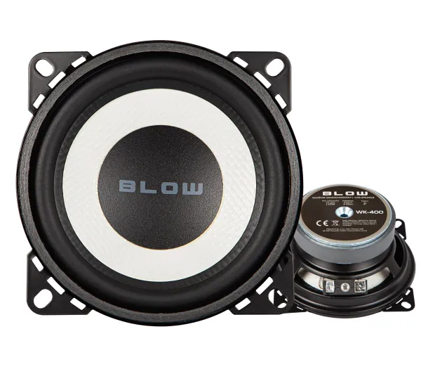 <h2>Głośnik BLOW WK400 samochodowy uniwersalny 4"</h2><p>Uniwersalny głośnik samochodowy Woofer 4'' marki Blow o maksymalnej mocy 100W. Dzięki wysokiej jakości wykonania oraz atrakcyjnej kolorystyce głośnik powinien idealnie wpasować się do wnętrza każdego auta. Wyjątkowo duża średnica oraz dobre parametry podzespołów zapewniają czysty i dynamiczny dźwięk oraz szeroki zakres częstotliwości oferując niezwykłe doznania muzyczne.</p><h3>Przyciągający wygląd i solidne wykonanie</h3><p>Materiały których użyto przy produkcji głośników dają pewność wyjątkowego brzmienia. Dzięki wysokiej jakości wykonania oraz atrakcyjnej kolorystyce głośnik powinien idealnie wpasować się do wnętrza każdego auta. Otwory montażowe zostały wykonane zgodnie z panującym standardem dzięki czemu głośnik można zamontować do większości aut bez konieczności przerabiania miejsc montażowych.</p>