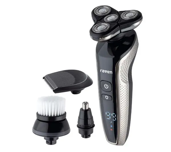 Golarka męska 4w1 EGM005✓ Wyświetlacz LED pozwala śledzić poziom naładowania baterii✓ Wygodne ładowanie za pomocą dołączonego do zestawu przewodu USB✓ Wodoodporność IPX6 umożliwia używanie golarki pod prysznicem<a>Korzyści dla Ciebie</a><a>Co otrzymujesz</a><a>Warto wiedzieć</a>Korzyści dla Ciebie Szerokafunkcjonalność Golarka męska 4w1 Raven EGM005 pomoże Ci w kompleksowej pielęgnacji twarzy. Dzięki zestawowi wymiennych głowic pozwala na dokładne usuwanie zarostu, oczyszczanie skóry twarzy, strzyżenie brody i wąsów, a nawet pozbywanie się włosów z nosa! Wobec tego jedno urządzenie w zupełności wystarcza, by każdego dnia można było w pełni zadbać o wygląd zarostu i kondycję skóry twarzy. Efektywnegolenie Masz niewiele czasu na poranne golenie? Na szczęście z urządzeniem Raven EGM005 możesz zrobić to szybko i bez ryzyka podrażnienia czy nawet skaleczenia skóry twarzy. Prezentowana golarka została bowiem wyposażona w głowicę z aż 4 ostrzami, które precyzyjnie przylegają i dopasowują się do kształtu twarzy. Tym samym zapewniają dokładne i maksymalnie delikatne dla skóry golenie! Wysokaklasa szczelności Lubisz się golić pod prysznicem, ponieważ pozwala Ci to oszczędzać czas poświęcany na pielęgnację ciała? W takim razie zaopatrz się w urządzenie Raven EGM005, które dzięki klasie szczelności IPX6 z powodzeniem może być używane podczas kąpieli! Zdjęte z golarki głowice można natomiast bez obaw myć pod bieżącą wodą, co ułatwia utrzymanie całego sprzętu w higienicznej czystości. Bezprzewodowapraca Prezentowaną golarkę możesz używać tak, jak Ci wygodnie! Zabierz ją pod prysznic lub stań z nią przed lustrem, obok którego nie ma dostępu do gniazdka elektrycznego. W modelu Raven EGM005 znajduje się wytrzymały akumulator, który naładowany do pełna zapewnia aż do 90 minut bezprzewodowej pracy! Nie musisz się zatem martwić jej ciągłym zasilaniem, jednak gdy przyjdzie taka potrzeba, baterię z łatwością naładujesz, używając kabla USB.Co otrzymujesz W zestawie:✓ Golarka✓ Głowica do golenia✓ Głowica do nosa✓ Szczotka do twarzy✓ Głowica do strzyżenia✓ Szczoteczka✓ Instrukcja obsługi z kartą gwarancyjnąWarto wiedzieć Jak działa golarka rotacyjna? <p>Raven EGM005 jest golarką rotacyjną, czyli wyposażoną w obrotowe głowice poruszające się w wielu kierunkach niezależnie od siebie nawzajem. Oprócz tego w ruch wprawiana jest także sama głowa urządzenia, co przekłada się na niezwykłą skuteczność przy usuwaniu zarostu. Jedno pociągnięcie wystarcza, by pozbyć się większości grubych, szybkorosnących włosów, więc dzięki golarce możesz liczyć na sprawne uporanie się z codzienną pielęgnacją twarzy.</p>