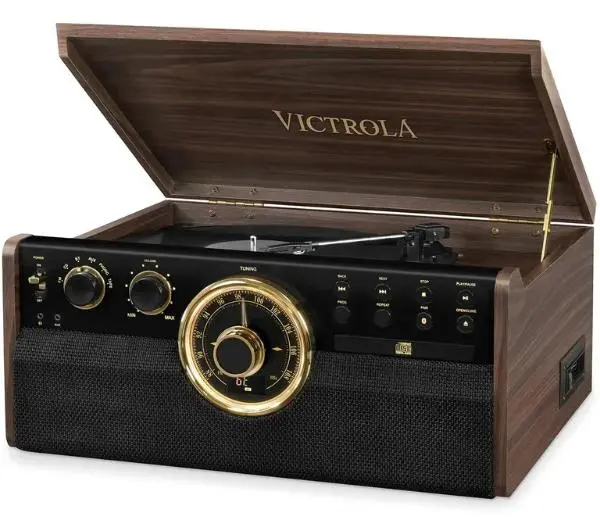 <h3>Wielofunkcyjny odtwarzacz audio</h3><h2>Victrola VTA-270B</h2><p>Muzyka pomaga Ci odprężyć się po pełnym emocji dniu? Na równi z dobrym brzmieniem cenisz oryginalną stylistykę i wygodę? Odtwarzacz Victrola VTA-270B to urządzenie właśnie dla Ciebie. W jego eleganckiej, drewnianej obudowie zamknięto nie tylko gramofon, ale także szereg dodatkowych funkcji. A dzięki wbudowanym głośnikom możesz po prostu słuchać muzyki czy ulubionej radiostacji bez konieczności podłączania kolumn.</p> <h4>Odkryj świat analogowego brzmienia</h4><p>Victrolę VTA-270B wyposażono w gramofon z napędem paskowym, który umożliwia odtwarzanie czarnych płyt w aż trzech prędkościach: 33 1/3, 45 i 78 obrotów na minutę. Na pokładzie znalazła się też kieszeń na kasety magnetofonowe. Dzięki temu znowu posłuchasz swojej kolekcji i wrócisz do magii starych utworów. A ponadto możesz skorzystać z tunera radia analogowego. Po prostu wyreguluj umieszczone w centralnym punkcie pokrętło i słuchaj ulubionej radiostacji.</p><h4> </h4> <h4>Zintegrowany odtwarzacz CD</h4><p>Chcesz zacząć zbierać płyty CD? Victrola VTA-270B może być Twoim pierwszym odtwarzaczem. Wysuń tackę, włóż płytę i rozpocznij odtwarzanie. Niezbędne przyciski znajdują się na przednim panelu. Mało tego masz również dostęp do przydatnych funkcji, jak programowanie odtwarzania (do 20 utworów) oraz Repeat, która umożliwia zapętlenie pojedynczego utworu lub całego krążka.</p><h4> </h4> <h4>Łatwo łącz się ze smartfonemi innymi urządzeniami</h4><p>A może wolisz ogrom możliwości, które dają serwisy streamingowe? Po prostu sparuj smartfon lub inne urządzenie mobilne z Victrolą VTA-270B i zacznij odtwarzać ulubioną playlistę ze Spotify czy Tidala. Chyba że wolisz tradycyjne rozwiązania. Wtedy użyj przewodu analogowego i podłącz go do wejścia AUX 3,5 mm.</p><h4> </h4> <h4>Słuchaj, jak lubisz</h4><p>Odtwarzacz Victrola VTA-270B jest wyposażony w dwa dobrej klasy głośniki, zasilane wbudowanym wzmacniaczem (2 × 5 W). Dzięki temu zyskujesz pełną niezależność i możesz po prostu cieszyć się dobrym brzmieniem. Ale równie dobrze możesz skorzystać ze swoich urządzeń. Dzięki wyjściu 3,5 mm podepniesz słuchawki, by podczas odsłuchów nie przeszkadzać innym domownikom. Z kolei umieszczone na tylnej ściance wyjście liniowe pozwoli Ci podłączyć głośniki aktywne lub amplituner.</p><h4> </h4>