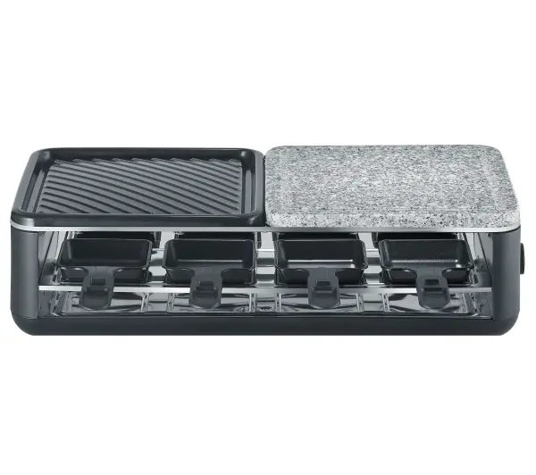 Raclette jest idealne do spotkań w większym gronie. Potrawy przygotowuje się na specjalnych mini patelniach, dzięki czemu każdy może skomponować potrawę ze swoich ulubionych składników.
