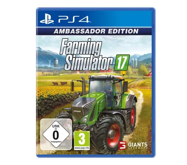 Farming Simulator 17 Ambassador Edition zawiera:<ul> <li>Farming Simulator 17</li> <li>Rozszerzenie Platinum DLC</li> <li>Big Bud</li> <li>Ropa DLC</li> <li>Kuhn DLC</li></ul>Wciel się w rolę współczesnego rolnika w Farming Simulator 17! Zanurz się w ogromnym otwartym świecie wypełnionym zbiorami nowej zawartości. Eksploruj możliwości rolnicze na setkach akrów ziemi, w tym szczegółowe nowe środowisko Ameryki Północnej. Używaj ponad 250 pojazdów i sprzętu rolniczego od ponad 75 producentów, w tym nowych marek, takich jak Challenger, Fendt, Valtra czy Massey Ferguson. Zbieraj wiele rodzajów upraw, w tym słoneczniki i soję. Dbaj o swój inwentarz - krowy, owce, kurczaki, a teraz też świnie. Weź udział w pracach leśnych, i sprzedawaj swoje produkty, aby rozwinąć swoją farmę! Transportuj towary ciężarówkami i przyczepami lub ładuj je do wagonów i prowadź pociągi, aby dotrzeć do celu. Rozwijaj swoją farmę online wraz z innymi graczami i pobieraj mody stworzone przez społeczność, aby jeszcze bardziej zagłębić się w przygodę z Farming Simulator!