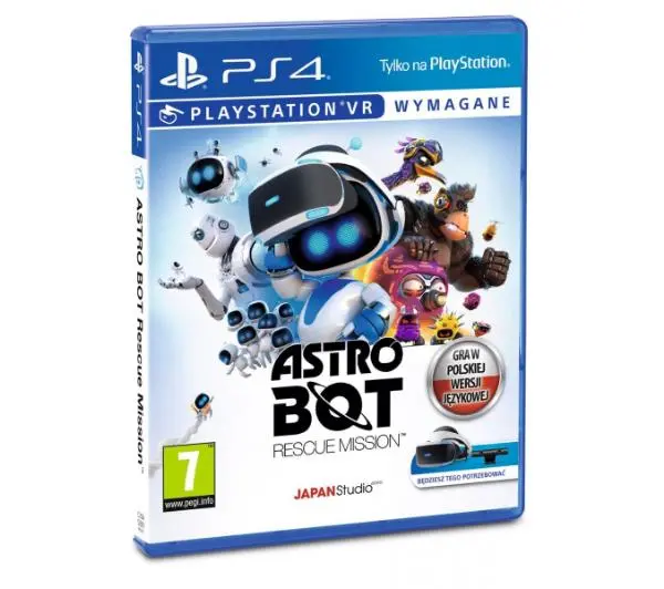 Poznaj zupełnie nowe spojrzenie na gry dzięki PlayStation VR, biorąc udział w tej ryzykownej akcji ratunkowej.Przejmij kontrolę nad Astro w niezwykłej przygodzie, aby uratować jego załogę – zestaw słuchawkowy PS VR sprawi, że znajdziesz się w samym centrum akcji. Wykonuj każdy skok z dokładnością i zachowaj czujność – w tym brawurowym zadaniu jest wiele tajemnic do odkrycia. Nie zapomnij o przechylaniu swojego ciała, aby wyglądać zza rogów, i tworzeniu ścieżek dla zaprzyjaźnionego robota, aby mógł on się wspinać.W 20 misjach pełnych śmiercionośnych pułapek, wrogów i bossów, los załogi Astro jest w Twoich rękach…<ul> <li>Gadżety w zasięgu ręki</li></ul>Za pomocą kontrolera bezprzewodowego Dualshock 4 operuj narzędziami wyświetlanymi na ekranie – od wystrzeliwanego haka i armatek wodnych po proce i zabójcze gwiazdki shuriken.<ul> <li>Potrzebujesz więcej wyzwań?</li></ul>Jeśli po zakończeniu głównej fabuły nadal masz ochotę na grę, możesz odblokować kolejne 26 etapów, które przetestują Twoje umiejętności poruszania się po platformach.<ul> <li>Zbuduj swoją kolekcję</li></ul>Zbieraj monety w grze, aby zagrać w minigry w celu uzyskania nagród, które pozwolą Ci stworzyć interaktywną mapę przygód z przeszłości.