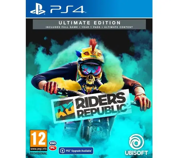 <h3>Ciesz się rozbudowanym trybem wieloosobowym w Riders Republic™! Bierz rower, narty, snowboard lub wingsuit i eksploruj otwarty świat sportowego raju, gdzie możesz ustalać własne reguły — albo je łamać.</h3><ul> <li>Rywalizuj z 20 graczami jednocześnie w rozbudowanym trybie wieloosobowym.</li> <li>Bierz udział w wyścigach ze startu wspólnego — zderzaj się, ścieraj i walcz o pozycję!</li> <li>Personalizuj swoją postać, by pochwalić się swoim stylem przed znajomymi i rywalami.</li> <li>Przemierzaj otwarty świat na rowerze, nartach, snowboardzie lub w wingsuicie w trybie kariery lub wydarzeniach wieloosobowych.</li> <li>Zaszalej na szczytach słynnych parków narodowych Ameryki, takich jak Yosemite, Zion czy Bryce Canyon.</li></ul>Riders Republic Ultimate Edition zawiera:<ul> <li>Grę Riders Republic</li> <li>Season Pass (1 rok)</li> <li>Dodatkową zawartość</li></ul>