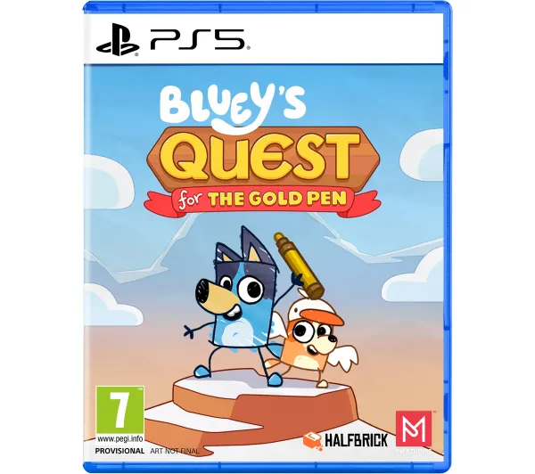 Opis: Wyrusz z Bluey w wyjątkową przygodę pełną wyobraźni!. To ciepła, rodzinna gra przygodowa, w której przemierzysz ręcznie rysowane światy, rozwiązując zadania i odkrywając tajemnice zaginionego Złotego Pióra.