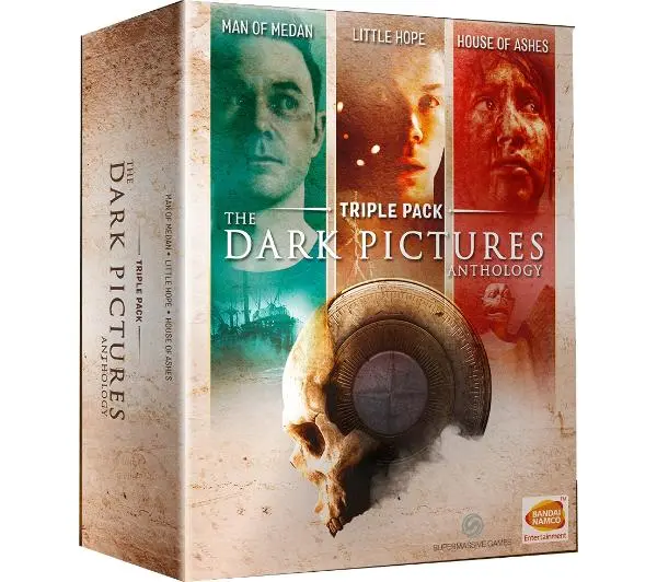 The Dark Pictures Anthology Triple Pack zawiera:<ul> <li>3 pełne gry – Man of Medan, Little Hope oraz House of Ashes</li> <li>3 kolekcjonerskie piny</li> <li>Steelbook na 4 płyty</li> <li>Materiałową mapę antologii Dark Pictures</li></ul>Dark Pictures Anthology to seria sugestywnych, samodzielnych gier z gatunku horror, utrzymanych w filmowym klimacie, połączonych z niesamowitą historią i unikalnymi opcjami trybu dla wielu graczy. Każda nowa gra, która została zainspirowana zarówno prawdziwymi wydarzeniami, faktami czy legendami posiada zupełnie nową historię, miejsce akcji i nowe postaci. Każda nowa część z antologii Dark Picture zapewni doświadczenie w klimacie filmowego horroru, zarówno w trybie dla jednego gracza, jak i w trybie rozgrywki wieloosobowej, takiej jak Wspólna Historia, w której gracz może podzielić się swoją historią z przyjacielem grając online i Noc Filmowa, w której do 5 graczy może grać offline w trybie Przekaż kontroler.