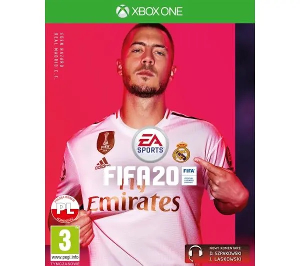 <h4>FIFA 20 Edycja Standardowa (Xbox One)</h4><p>Gra dla entuzjastów piłki nożnej od EA Sports z zaawansowaną symulacją zdarzeń na boisku, nowym systemem celowania, piłką uliczną VOLTA oraz wyzwaniami sezonowymi FIFA Ultimate Team.</p><h4>Poznaj grę FIFA 20</h4><a></a><h5>REALISTYCZNE SPOTKANIA</h5><p>Zinedine Zidane, Ronald Koeman czy Ian Wright to tylko kilka z aż 17 000 wiernie odwzorowanych sylwetek piłkarzy dostępnych w grze FIFA 20. Znajdziesz tu również 700 licencjonowanych drużyn i 30 oficjalnych lig dla maksymalnej przyjemności gry.</p><a></a><h5>ZJAWISKOWE ZAGRANIA</h5><p>Pokonaj przeciwnika, wykorzystując zaawansowaną fizykę piłki, pewne wykończenia i nowe trajektorie strzałów oraz ciesz się naturalnym odwzorowaniem zdarzeń na boisku dzięki ulepszonemu systemowi piłkarskiej inteligencji SI.</p><a></a><h5>CELNE UDERZENIA</h5><p>Zaskocz przeciwnika podkręconą piłką i zdobywaj gole nawet z dalekich rzutów wolnych – ulepszony system celowania pozwala kontrolować stałe fragmenty gry, posyłając piłę w wybrany fragment bramki.</p><a></a><h5>STYL VOLTA</h5><p>Zmierz się w emocjonujących pojedynkach podwórkowych (z bramkarzem lub bez), sięgając po nowy tryb futbolu ulicznego VOLTA FOOTBALL. Spotkania rozegrasz w halach i na osiedlowych placach gry z całego świata.</p><a></a><h5>TRYB KARIERY</h5><p>Sprawdź się jako manager klubu sportowego, motywując zawodników w trakcie spotkań i konferencji prasowych. W trybie kariery od podstaw stworzysz swoją postać, dobierając strój czy fryzurę kierownika zespołu.</p><a></a><h5>SEZON FIFA ULTIMATE TEAM</h5><p>Zbuduj swój zespół od podstaw, ulepszaj skład, pokonując kolejne wyzwania sezonowe i zdobywaj gwiazdy światowej piłki, takie jak Ronaldo czy Ronaldinho z pomocą wirtualnych kart FUT (FIFA Ultimate Team).</p><h4>Recenzje gry FIFA 20</h4><p>Nowa FIFA to gra, która zdominuje spotkania przy pizzy i piwie.</p>Jakub Mirowski, gry-online.pl<p>Gra na różnorodnych arenach – czy to osadzonych w ulicznych sceneriach, czy też na dachach wieżowców – gwarantuje sporo frajdy ze względu na ogromne możliwości w kontekście wykonywania sztuczek technicznych i bardzo szybkiego tempa gry.</p>Amadeusz Cyganek, komputerswiat.pl<p>VOLTA jest bardzo dobrym dodatkiem, który z powodzeniem mógłby doczekać się osobnego wydania. Jest to bez dwóch zdań najlepsza innowacja w grze FIFA 20.</p>Jakub Krawczyński, hdtvpolska.com<p>Gameplay jest bardziej taktyczny, każda dobrze przeprowadzona akcja cieszy i jestem pewien jednego – entuzjaści serii mogą zacierać rączki.</p>Wojciech Gruszczyk, ppe.pl<h4>Gra FIFA 20 z bliska</h4><h6>1 LEPSZE ZARZĄDZANIE ZESPOŁEM</h6><p>Nowy ekran drużyny pozwala na wygodny wybór zawodników, sprawdzanie statystyk i korzystanie z transferów piłkarzy.</p><h6>2 OPRAWA STADIONOWA</h6><p>Personalizuj swój team z pomocą unikalnych cieszynek, herbu i motywów stadionowych, które pojawią się po każdej bramce.</p><h6>3 EMOCJE SQUAD BATTLE</h6><p>Pokonaj drużyny innych graczy FIFA 20 sterowane przez SI, by piąć się na szczyt tabeli rankingowej.</p><h4>W opakowaniu gry FIFA 20 Edycja Standardowa</h4><h6>1Gra FIFA 20</h6><h4>EA Sports – marka godna zaufania</h4><p>Ponad 25 lat doświadczenia w produkcji gier sportowych</p><p>Wydawca popularnych serii NBA Live, NHL, UFC, Madden</p><p>Producent gier sportowych na konsole, urządzenia mobilne i PC</p>