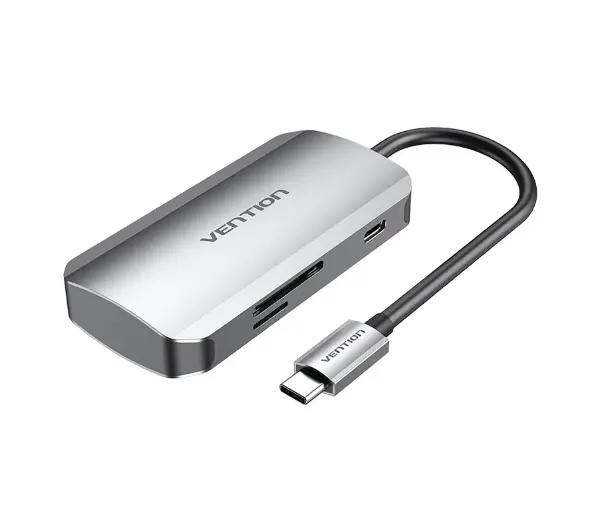 <h2>Stacja dokująca USB-C na 3x USB3.0, SD, TF, PD 0,15m Vention TNHHB (szary)</h2><p>Hub Vention TNHHB wyposażono w szereg różnorodnych portów, w tym USB 3.0, port USB-C oraz 2 sloty na karty TF/SD. Dzięki temu umożliwia nie tylko ładowanie urządzeń, ale i przesyłanie plików, zapewniając efektywną wymianę informacji. Aluminiowa konstrukcja zapobiega przegrzaniom, a lekki i niewielki design sprawia, że może towarzyszyć Ci wszędzie.</p> <h2>Transfer plików w ekspresowym tempie</h2><p>Ten wszechstronny hub umożliwia szybki transfer danych z prędkością 5 Gbps, co pozwala na przenoszenie zdjęć z wakacji, filmów, prezentacji oraz ważnych dokumentów w mgnieniu oka. Przy takiej szybkości, 1 GB danych przekopiujesz zaledwie w 3 sekundy! Dodatkowo hub obsługuje karty pamięci o pojemności do 256 GB i umożliwia równoczesne odczytywanie danych z dwóch kart.</p> <h2>Ładowanie szybsze niż myślisz</h2><p>Hub Vention pozwoli Ci błyskawicznie naładować wybrane urządzenie. Oferuje moc 100 W, a ponadto wspiera szybkie ładowanie Power Delivery. Oznacza to, że odnawianie energii Twojego laptopa nie zajmie zbyt dużo czasu.</p>