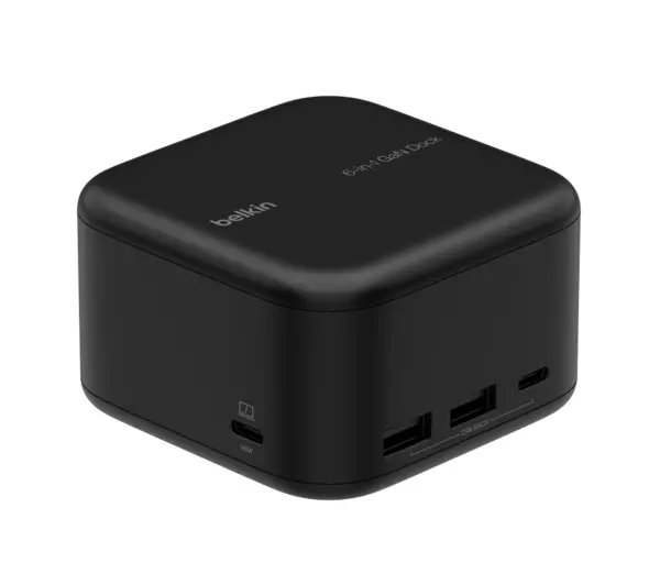 <h2>Belkin Connect Stacja dokująca USB C 6w1, GaN, 130W</h2><p>Ta stacja dokująca realnie rozszerzy możliwości Twojego komputera, a ze względu na niewielką wagę i gabaryty bez problemu spakujesz ją do torby z laptopem – na przykład zamiast ładowarki, którą może ona zastąpić! Oto przełomowy produkt, który czerpie garściami z dobrodziejstw, jakie daje technologia GaN. Belkin Connect INC018VFBK to stacja dokująca wyposażona w cztery gniazda USB, złącze Ethernet oraz HDMI 2.0!</p><ul> <li>Dwa gniazda USB-A – zyskaj dwa dodatkowe porty USB-A umożliwiające szybki transfer plików.</li> <li>Dwa gniazda USB-C – jeden służy do połączenia z komputerem, a drugi możesz wykorzystać na własny użytek.</li> <li>Całkowita moc 130W – łączna moc wszystkich gniazd w tym modelu wynosi aż 130W!</li> <li>Ładowanie laptopa – ta stacja dokująca 6w1zastąpi ładowarkę od laptopa zasilanego z USB-C z mocą do 98W.</li> <li>Gniazdo HDMI 2.0 – stacja Belkin Connect jest wyposażona w gniazdo HDMI 2.0 do przesyłu obrazu i dźwięku w super jakości.</li> <li>Gniazdo Rj-45 – w modelu nie zabrakło również gniazda sieciowego Ethernet do szybkiego i stabilnego połączenia z siecią.</li> <li>Kompaktowe wymiary – dzięki zastosowaniu azotku galu ta stacja dokująca mierzy zaledwie 8x8x4,8 cm!</li> <li>Tryb ładowarki i stacji dokującej – kostka Belkin Connect działa samodzielnie jako ładowarka, lub jako hub, po połączeniu z komputerem.</li></ul><h4>Aż cztery porty USB</h4><p>Na jednej z sześciu ścianek kostki Belkin Connect znajdują się dwa gniazda USB-A 3.2 oraz jedno gniazdo USB-C 3.2 z mocą 7,5 W w każdym z nich i przepustowością aż 5 Gbps. Wolisz ładować urządzenia, czy przesyłać duże pliki? Decyzja należy do Ciebie – z tą stacją Belkin Connect możesz robić to, co w danym momencie jest dla Ciebie najważniejsze! Na kolejnej ściance znajdziesz port USB-C, który umożliwia połączenie z komputerem i jednoczesne ładowanie.</p><h4>Oto stacja dokująca, która zastąpi ładowarkę do laptopa!</h4><p>Belkin Connect to znacznie więcej niż stacja dokująca do MacBooka czy innego laptopa – to multifunkcyjna inteligentna kostka szybkiego ładowania, która z powodzeniem zastąpi ładowarkę do Twojego laptopa. Wystarczy połączyć laptop z kostką za pomocą gniazda USB-C PD 96W i gotowe! Teraz nie musisz już korzystać z osobnej ładowarki, ponieważ kostka automatycznie dostosuje moc ładowania do wymagań Twojego urządzenia i rozpocznie proces ładowania.</p><h4>Złącze HDMI zapewniające super jakość obrazu 4K</h4><p>Czy w Twoim laptopie zabrakło gniazda HDMI? A może to, które masz, nie obsługuje rozdzielczości 4K, co uniemożliwia pełne zanurzenie się w świecie ulubionej gry komputerowej? Ta magiczna kostka to także hub HDMI – wystarczy, że podłączysz ją do swojego laptopa, aby zyskać dodatkowe gniazdo HDMI 2.0, które umożliwia przesyłanie obrazu w doskonałej jakości 4K przy odświeżaniu 60 Hz.</p> <h4>Dwa tryby działania</h4><p>Belkin Connect to stacja dokująca i kostka ładująca w jednym, co oznacza, że może działać zarówno samodzielnie, jak i w połączeniu z komputerem. Wystarczy podłączyć ją do gniazdka za pomocą kabla sieciowego, a ładowanie można rozpocząć – do Twojej dyspozycji są dwa porty USB-A o mocy 7,5 W, port USB-C o mocy 7,5 W oraz port USB (PD) o mocy do 96 W. To potężna ładowarka GaN 130 W, gdzie skrót GaN oznacza azotek galu. Dzięki zastosowaniu tego związku w konstrukcji ta ładowarka osiąga ogromną moc przy niewielkich gabarytach.</p> <h4>Dwuletnia gwarancja producenta</h4><p>Marka Belkin udziela dwuletniej gwarancji na tę stację dokującą. Tak długi okres gwarancyjny jest dodatkowym potwierdzeniem jakości tego sprzętu – to solidnie wykonana, niezawodna i bezawaryjna stacja dokująca, która w znacznym stopniu rozszerzy możliwości Twojego laptopa!</p><h4>Opakowanie z wyprodukowane z przetworzonych surowców</h4><p>Stacja dokująca Belkin Connect jest zapakowana w opakowanie wytworzone w 100% z surowców wtórnych i nadające się do ponownego przetworzenia. Wybierając ten produkt, przyczyniasz się do poprawy środowiska naszej wspólnej planety!</p><p>Najważniejsze cechy:</p><ul> <li>stacja dokująca 6w1,</li> <li>ładowarka GaN 130W,</li> <li>1 × HDMI® 2.0 4K przy 60 Hz (3840 × 2160 px),</li> <li>2 × USB-A 3.2 1 gen. (5 Gb/s) 1,5 A,</li> <li>1 × USB-C 3.2 1 gen. (5 Gb/s) 1,5 A ,</li> <li>1 × złącze Ethernet (10 M / 100 M / 1000 M) Moc PD 96 W (bez transmisji danych),</li> <li>długi kabel zasilania AC</li></ul><p>Opakowanie zawiera:</p><ul> <li>stacja dokująca USB-C GaN Core 6w1 130 W.</li></ul><p>Kompatybilność:</p><ul> <li>zgodne z urządzeniami Mac, Windows® i Chromebook™ z portem USB-C,</li> <li>urządzenia ładowane z gniazda USB-C.</li></ul>