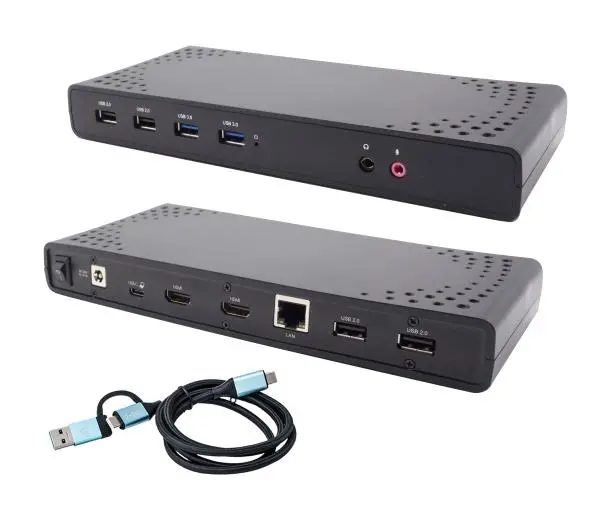 Informacje dodatkowe: uniwersalna stacja dokująca, kompatybilna z laptopami i tabletami ze złączami USB-C, USB-A i Thunderbolt