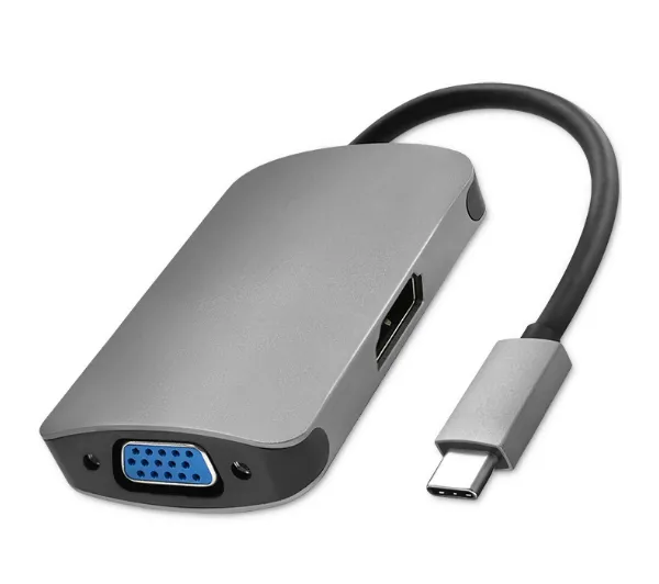 Hub USB Qoltec 50380 Adapter USB-C 3.1 2w1 HDMI 4K VGA Szary