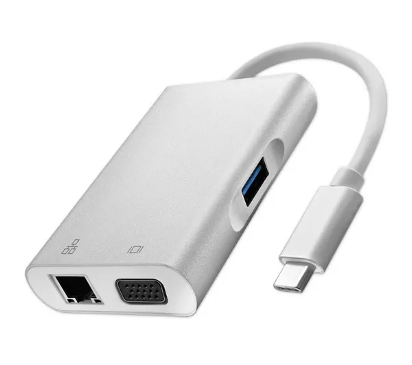 Hub USB Qoltec 50410 Adapter USB-C 3.1 4w1 USB 3.0 VGA RJ45 USB-C PD 92W Srebrny