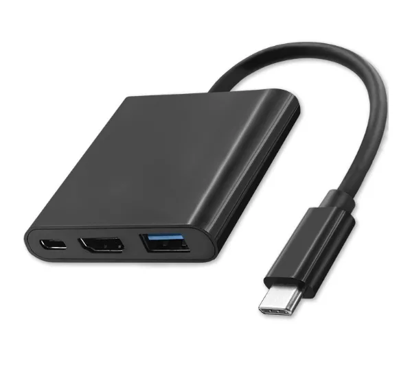 Hub USB Qoltec 50430 Adapter USB-C 3.1 3w1 USB 3.0 HDMI 4K USB-C 3.1 PD 100W Czarny