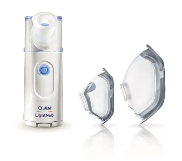 <h2>Flaem LightNeb</h2>Wybierz inhalator z trybem nebulizacji, dzięki któremu rozmaite leki i sterydy będą dostarczane bezpośrednio do układu oddechowego. Flaem LightNeb spełni Twoje oczekiwania. Docenisz go np. podczas leczenia dzieci – za jego pomocą możesz przeprowadzać zabiegi także w nocy, ponieważ jest podświetlany i wyróżnia się bardzo cichą pracą.Urządzenie umożliwia nebulizację antybiotyków oraz sterydów w domowym zaciszuDzięki podświetleniu można go wygodnie używać także w nocyNebulizacja ciągła i na żądanie – dopasuj sposób przyjmowania leków do potrzeb<h2>Poznaj inhalator Flaem LightNeb</h2> Inhalacje w domuJeśli borykasz się z chorobami układu oddechowego, z pewnością docenisz wysoką funkcjonalność inhalatora Flaem LightNeb. Dzięki funkcji nebulizacji jest on w stanie dostarczać niezbędne leki wprost do układu oddechowego, więc mogą one zacząć działać szybciej i efektywniej. Produkt nadaje się do podawania antybiotyków i sterydów, więc sprawdzi się przy różnego rodzaju schorzeniach. Dyskretna pracaTwoje dziecko potrzebuje inhalacji również w nocy, a Ty nie chcesz zbudzić pozostałych domowników podczas przeprowadzania zabiegu? W takim razie z pewnością docenisz urządzenie Flaem LightNeb, które cechuje się bardzo cichym działaniem, a do tego wyposażony został w podświetlenie, dzięki któremu nie musisz zapalać lampy w pomieszczeniu. 2 tryby pracyZ produktu Flaem LightNeb możesz korzystać w trybie pracy ciągłej lub na żądanie. Pierwsza opcja zakłada wytwarzanie delikatnej mgiełki przez cały czas inhalacji – za sprawą założonej maseczki po prostu możesz oddychać przyjmowanymi lekami. Z kolei druga opcja umożliwia aktywację nebulizacji w sposób zsynchronizowany z wdechami. Wyjątkowa funkcjonalnośćFlaem LightNeb może być zawsze przy Tobie! Jeśli kłopoty z układem oddechowym pojawiają się u Ciebie znienacka, warto skorzystać ze schowanego w torebce lub plecaka inhalatora. Ten model jest bardzo mały i wygodny w transporcie. Wyróżnia się także bardzo prostą obsługą, więc możesz z niego wygodnie korzystać nawet w niesprzyjających warunkach. Pełna higienaAby inhalator mógł prawidłowo spełniać swoje zadanie przez jak najdłuższy czas, należy utrzymywać go w higienicznej czystości. W przypadku modelu Flaem LightNeb jest to bardzo łatwe, ponieważ urządzenie można bez trudu rozłożyć na części, by każdą z nich oczyścić i zdezynfekować. Tym sposobem masz pewność, że produkt jest bezpieczny dla Ciebie i Twoich bliskich. Certyfikat jakościZ inhalatora Flaem LightNeb mogą bezpiecznie korzystać zarówno dorośli, jak i dzieci. Urządzenie zostało dokładnie przebadane, przetestowane i sprawdzone pod kątem jakości i bezpieczeństwa, czego dowodem jest przyznany produktowi certyfikat TÜV Rheinland. Możesz mieć zatem pewność, że podczas leczenia siebie i bliskich korzystasz tylko z produktów najwyższej klasy.<h2>Zawartość opakowania Flaem LightNeb</h2>W opakowaniu Inhalator Maska dla dorosłych Maska dla dzieci Torba Ustnik Instrukcja obsługi w języku polskim Karta gwarancyjnaFlaem – marka godna zaufaniaPonad 50 lat doświadczeniaMarka jest obecna na rynku od 1966 roku Europejskie dziedzictwoFirma z siedzibą we WłoszechWytwórca urządzeń medycznychJeden z liderów w produkcji wyrobów terapii aerozolowej i urządzeń oddechowych