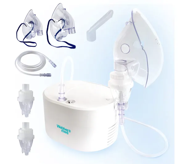 Wyposażenie: końcówka doustna , maska dla dorosłych, maska dla dzieci, nebulizator, pokrowiec, smoczek do inhalacji niemowląt, ustnik, zasilacz