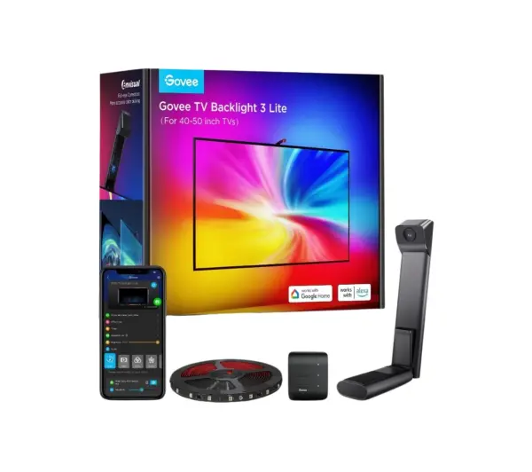 <h2>Odkryj zupełnie nowy poziom immersji z Govee H6097 TV Backlight 3 Lite</h2><p>Dzięki innowacyjnej technologii RGBICW, taśma LED doskonale oddaje kolory wyświetlane na ekranie, co pozwala na idealne dopasowanie oświetlenia do tego, co obecnie oglądasz. Możesz łatwo kontrolować światło za pomocą dedykowanej aplikacji Govee Home, pilota lub za pomocą asystentów głosowych, takich jak Alexa i Google Assistant.</p><h2>Nowoczesna technologia dla intensywnych i dokładnych kolorów</h2><p>Dzięki innowacyjnemu systemowi RGBICW, taśma LED prezentuje szeroki wachlarz kolorów, które perfekcyjnie oddają barwy z ekranu telewizora. Światło dynamicznie zmienia się w zależności od zawartości, co przenosi widza w zupełnie nowy wymiar wrażeń. Różnorodność odcieni tworzy atmosferę, idealną do oglądania filmów oraz grania w gry.</p><h2>Inteligentne sterowanie i pełna kontrola</h2><p>Govee TV Backlight 3 Lite to urządzenie, które możesz łatwo kontrolować za pomocą Wi-Fi, Bluetooth, a także aplikacji Govee Home. Z pomocą asystentów głosowych, jak Alexa i Google Assistant, możesz sterować podświetleniem bez użycia rąk. Ta wszechstronność sterowania sprawia, że możesz dostosować oświetlenie do swoich potrzeb w dowolnej chwili, nawet gdy jesteś z dala od telewizora.</p><h2>Korekcja efektu rybiego oka</h2><p>Dzięki specjalnej kamerze i funkcji korekcji rybiego oka, taśma LED precyzyjnie odwzorowuje kolory widoczne na ekranie, eliminując zniekształcenia obrazu. Oświetlenie dynamicznie dostosowuje się do ruchu na ekranie, co sprawia, że każda scena nabiera nowego, realistycznego wymiaru. Zyskaj jeszcze większą immersję podczas oglądania filmów lub grania w gry.</p><h2>Szybszy procesor i niesamowita wydajność</h2><p>Nowa jednostka centralna w Govee H6097 TV Backlight 3 Lite jest o 15-20% szybsza, co pozwala na bardziej płynne działanie i doskonalszą synchronizację kolorów. Dlatego oświetlenie reaguje natychmiastowo na zmiany na ekranie, co przekłada się na jeszcze lepsze doznania wizualne. Ponadto, taśma LED jest wyjątkowo energooszczędna i trwała.</p><h2>Specyfikacja</h2><ul> <li> Model : H6097 </li> <li> Kompatybilne rozmiary TV : 40-50 cali </li> <li> Długość : 2.4 m / 7.9 ft (4 sekcje) </li> <li> Kolory światła : RGBICW </li> <li> Diody LED : 30 LEDs/m </li> <li> Kamera: Pojedyncza kamera </li> <li> Wsparcie dla ultra-cienkich TV : Tak </li> <li> Metody kontroli : Aplikacja, Skrzynka kontrolna, Sterowanie głosowe </li> <li> Łączność aplikacji: 2.4GHz Wi-Fi + Bluetooth </li> <li> Napięcie: 12 V </li> <li> Moc : 24 W </li> <li> Cechy specjalne : 4 w 1 LED, Korekcja rybiego oka, 15%-20% szybszy nowy chip </li> <li> Wsparcie dla Matter : Tak </li></ul>