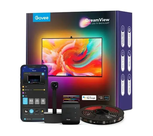 <h2>Technologia synchronizacji kolorów</h2><p>Spraw, aby Twoja domowa rozrywka stała się bardziej dynamiczna i wciągająca niż kiedykolwiek wcześniej! Z podświetleniem telewizora DreamView T1 możesz teraz wprowadzić do swojego pokoju wirtualne kolory i ruch, które doskonale odzwierciedlają to, co dzieje się na ekranie. Dzięki inteligentnej kamerze Govee Envisual, podświetlenie telewizora automatycznie dopasuje kolory do tego, co się dzieje na ekranie, sprawiając, że twoje wrażenia z oglądania filmów i grania w gry będą jeszcze bardziej realistyczne i emocjonujące. Otwórz swój umysł na nowe doznania i pozwól, aby DreamView T1 rozszerzył horyzonty Twojej rozrywki!</p><h2>Sterowanie za pomocą głosu</h2><p>Możesz skorzystać z usług Siri, Alexy lub Google Assistant , aby kontrolować swoje światła - włączając je, wyłączając, zmieniając kolory lub regulując jasność do poziomu, który jest dla Ciebie odpowiedni. Dzięki temu, że korzystasz z prostych poleceń głosowych, oszczędzasz czas skutecznie wprowadzając pożądany nastrój.</p><h2>Nowy wymiar podświetlenia telewizora</h2><p>Przekształć swoje seanse przed telewizorem w niesamowitą wizualną przygodę dzięki podświetleniu Govee DreamView T1. To idealne rozwiązanie dla większości płaskich ekranów o przekątnej 75-85 cali, które zmienia sposób oglądania Twoich ulubionych programów telewizyjnych. Ciesz się dynamicznymi kolorami, które emanują wokół krawędzi telewizora, aby przenieść Cię do innego wymiaru rozrywki.</p><h2>Intensywniejsze wrażenia</h2><p>Podkręć atmosferę podczas gry albo zwyczajnego wieczoru filmowego, wykorzystując 12 różnorodnych trybów scen. Osoby, które pragną wyrazistych kolorów, pokochają funkcję segmentowej kontroli kolorów dzięki technologii RGBIC. Możesz spersonalizować każdy segment pojedynczego paska świetlnego, celem osiągnięcia jeszcze intensywniejszych wrażeń podczas oglądania.</p><h2>Specyfikacja</h2><ul> <li> Model: H6199 </li> <li> Odpowiedni rozmiar telewizora: 75-85 cali </li> <li> Metody sterowania: Bluetooth, Aplikacja </li> <li> Długość: 5m, 4 sekcje </li> <li> Materiał : Tworzywo sztuczne </li> <li> Napięcie: 12 V </li> <li> Moc: 24 W </li> <li> Waga: 0.74 kg </li></ul>