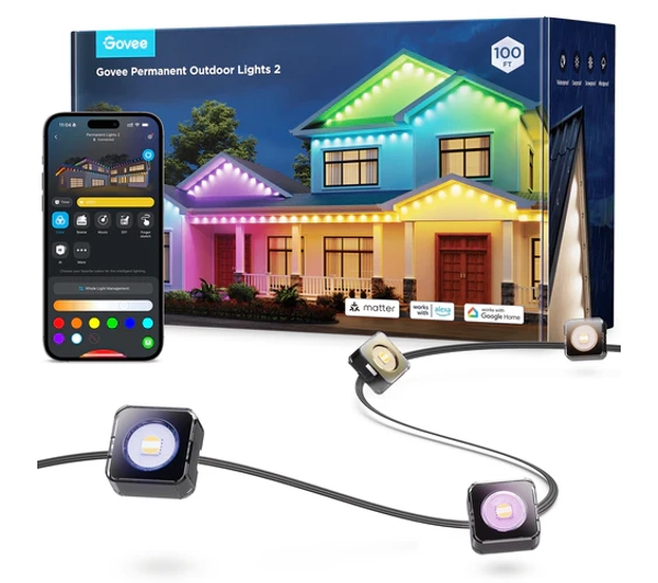 <h2>Govee H705E Permanent Outdoor Lights 2 odmieni atmosferę w twoim ogrodzie</h2><p>Lampki LED na taśmie o długości 30 metrów to idealne rozwiązanie, które rozświetli Twój ogród, taras czy patio przez cały rok. Dzięki technologii RGBICW, możesz delektować się dynamicznymi, wielobarwnymi efektami świetlnymi, dostosowanymi do Twoich preferencji za pomocą aplikacji Govee Home.</p><h2>Technologia RGBICW z dynamicznymi efektami świetlnymi</h2><p>Govee H705E oferuje technologię RGBICW, która pozwala na tworzenie płynnych przejść kolorów i dynamicznych efektów świetlnych. Każdy segment świateł można dostosować osobno, co daje pełną kontrolę nad kolorami i trybami oświetlenia. Dzięki 72 punktom świetlnym, każde miejsce w Twoim ogrodzie będzie równomiernie i estetycznie podświetlone.</p><h2>Wodoodporność i trwałość</h2><p>Govee H705E Permanent Outdoor Lights są wyposażone w klasę ochrony IP67, co oznacza, że są całkowicie odporne na warunki atmosferyczne, takie jak deszcz, śnieg czy kurz. Zarówno adapter, jak i skrzynka kontrolna posiadają klasę ochrony IP65, co gwarantuje długotrwałą trwałość oświetlenia bez względu na warunki zewnętrzne. Doskonałe do montażu na stałe w ogrodzie, bez ryzyka uszkodzenia przez warunki atmosferyczne.</p><h2>Inteligentne sterowanie i kompatybilność z Matter</h2><p>Te inteligentne światła zewnętrzne można łatwo sterować za pomocą aplikacji Govee Home, asystentów głosowych, takich jak Alexa i Google Assistant, oraz technologii Matter. Wi-Fi i Bluetooth umożliwiają szybkie połączenie i pełną kontrolę nad oświetleniem z dowolnego miejsca. Dostosuj jasność, kolory i sceny świetlne jednym dotknięciem lub za pomocą poleceń głosowych.</p><h2>Specyfikacja</h2><ul> <li> Model : H705E </li> <li> Kolory : RGBICW </li> <li> Długość : 30m </li> <li> Wodoodporność : Światła: IP67; Zasilacz: IP65; Skrzynka kontrolna: IP65 </li> <li> Liczba źródeł światła : 72 </li> <li> Lumeny : 40 lm na punkt świetlny </li> <li> Możliwość cięcia : Nie </li> <li> Technologia Matter : Tak </li> <li> Tryby scen : 100 </li> <li> Zasilacz : 36V 2A </li> <li> AIGC : Tak </li></ul>