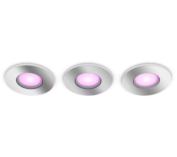 Philips Hue White and color ambianceReflektor łazienkowy wpuszczany Xamento 3x4.2W (chrom) Możliwość przyciemniania i regulacji temperatury barwowej 16 mln kolorów i wszystkie odcienie bieli Klasa szczelności IP44 Łatwy start dzięki BluetoothTworzenie dowolnych aranżacji, sterowanie do 10 świateł Hue za pomocą aplikacji mobilnej Philips Hue (dostępna na iOS i Android). Stwórz klimat na każdą okazjęMiliony kolorów i szeroka gama bieli – od ciepłej po chłodną – pozwolą Ci dopasować oświetlenie do każdej chwili. Od imprezy po wieczór pełen relaksu, światło odmieni atmosferę Twojego wnętrza. Bogata paleta światła białegoReguluj jasność, temperaturę barwową i intensywność światła, by stworzyć idealne warunki do pracy, relaksu lub spotkań – dokładnie tak, jak potrzebujesz. Steruj światłem jak chceszPrzez aplikację mobilną, akcesoria sterujące czy głosowo (kompatybilne z Apple HomeKit*, Google Assistant, Amazon Alexa).*wymaga mostka Hue Bridge Inteligentne oświetlenie do łazienki – odporne na wilgoćLampy zaprojektowane z myślą o wilgotnych pomieszczeniach. Spełniają normę IP44 i przeszły rygorystyczne testy wodoodporności, dzięki czemu świetnie sprawdzą się w każdej łazience. Najważniejsze parametryZawartość opakowania:Trzy reflektory łazienkowe wpuszczane Xamento.<ul> <li>Kolor: Chrom</li> <li>Temperatura światła: 2000–6500 K</li> <li>Napięcie: 230 V</li> <li>Trwałość: do 25 000 godz.</li> <li>Materiał: Syntetyk</li> <li>Strumień świetlny: 1 050 lm (dla barwy 2700 K)</li> <li>Długość: 9 cm</li> <li>Szerokość: 9bcm</li> <li>Wysokość: 10 cm</li> <li>Klasa szczelności: II – podwójna izolacja</li></ul> Mostek Philips Hue - odblokuj wszystkie możliwości inteligentnego oświetlenia Zyskaj możliwości sterowania oświetleniem będąc nawet poza domem Stałe, nieobciążające sieci połączenie i automatyczne aktualizacje Łatwo kontroluj i zapisuj ustawienia także wtedy, gdy nie ma Wi-Fi Ustawiaj automatyczne harmonogramy oraz sceny i strefy Współpracuje z innymi inteligentnymi urządzeniamiMostek Hue jest sprzedawany oddzielnie Stwórz smart home z Philips HueSmart home zaczyna się od inteligentnego oświetlenia. Wyobraź sobie dom, w którym możesz z łatwością stworzyć warunki do nauki, imprezowy klimat, czy nastrój sali kinowej za pomocą kilku przycisków. A dzięki współpracy Philips Hue z takimi partnerami jak Samsung SmartThings, Amazon Alexa, czy też Google Assistant, możesz z łatwością sterować różnymi urządzeniami w swoim mieszkaniu. Mostek Philips Hue jest kompatybilny z protokołem Matter, co daje gwarancję tego, że oświetlenie Philips Hue bez problemów będzie działać z innymi urządzeniami Twojego inteligentnego domu – teraz i w przyszłości.