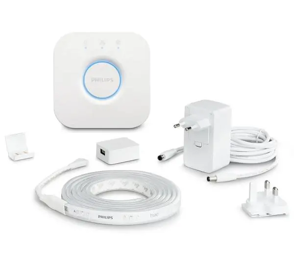 Philips Hue White and Color Ambiance Taśma LED 2m + mostek Hue Bridge<p>Użyj elastycznej taśmy LED Philips Hue. Oświetl wnętrza w swoim domu w wyjątkowy sposób i stwórz niepowtarzalny nastrój odpowiedni do okazji. Podłącz taśmę do mostka Philips Hue i bezprzewodowo steruj swoim światłem. Wybieraj ustawienia, twórz fantastyczne aranżacje świetlne, zsynchronizuj światło z muzyką, filmami i grami steruj oświetleniem głosowo lub za pomocą aplikacji Philips Hue.</p><p>Szukasz wysoce zaawansowanego systemu inteligentnego oświetlenia? Wybierz Philips White and Color Ambiance z serii Philips Hue. Zautomatyzuj harmonogram oświetlania swoich wnętrz, modyfikuj intensywność oraz barwę światła. Stwórz swoją idealną przestrzeń dopasowaną do pory dnia i Twojego nastroju.</p>Steruj oświetleniem za pomocą głosu.<p>Po podłączeniu inteligentnego oświetlenia do mostka Hue Bridge będziesz w stanie zsynchronizować je z Asystentem Google, Alexą oraz Apple HomeKit. Dzięki temu, za pomocą prostych komend głosowych będziesz w stanie włączyć, wyłączyć, przyciemnić lub rozjaśnić światło oraz włączyć wybraną aranżację świetlną.</p>Steruj światłem będąc poza domem.<p>Pobierz aplikację Philips Hue na telefon lub tablet i steruj swoim inteligentnym oświetleniem również spoza domu. Włączaj światła, aby odstraszać niepożądanych gości, wyłączaj, aby oszczędzać energię oraz steruj jasnością i natężeniem światła.</p>Dopasuj światło do wykonywanej czynności.<p>Wybierz jeden z czterech, automatycznie wgranych ustawień oświetlenia i dostosuj światło do wykonywanej czynności. Ustawienia Koncentracja i Energia dostarczają chłodne światło, które ułatwia wstawanie i skupienie się, a ustawienia Relaks i Czytanie dostarczają ciepłe światło, które sprzyja odpoczynkowi.</p>Światło pomoże Ci się obudzić i zasnąć.<p>O poranku ustaw chłodne światło, którego natężenie będzie stopniowo wzrastać i pobudzać Cię do działania. Wieczorem ustaw ciepłe światło, aby pozwolić swojemu ciału się zrelaksować i przygotować do snu.</p>Podkręć emocje i zgraj światło z filmem i muzyką.<p>Odkryj niesamowite możliwości oświetlenia Philips Hue. Za pomocą aplikacji Hue zsynchronizuj oświetlenie z telewizorem, grami lub muzyką. Wypełnij wnętrze wyjątkowymi barwami i podkręć emocje.</p>Twórz kolorowe aranżacje światlne.<p>Wybierz jedną z aranżacji świetlnych przygotowanych przez ekspertów Philips lub daj się ponieść wyobraźni. Stwórz swoją własną, wyjątkową aranżację świetlną, dobierając jedną z 16 milionów barw i dopasowując natężenie światła. Wykreuj wyjątkową atmosferę dopasowaną do okazji.</p>Wskocz na wyższy poziom gry.<p>Jesteś fanem gier? Zsynchronizuj oświetlenie Philips Hue z obrazem wyświetlanym na ekranie monitora lub telewizora. Rozszerz swój wirtualny świat i wskocz na wyższy poziom gry.</p>Ustaw automatyczne harmonogramy.<p>Inteligentne oświetlenie Philips Hue posiada funkcję harmonogramów, dzięki której ustawisz godziny, o których światło ma się włączać i wyłączać. Możesz ustawić automatyczne włączanie tak, aby światło zawsze witało Cię, gdy będziesz wracać do domu.</p>Rozbuduj system oświetlenia o możliwość inteligentnej konfiguracji dzięki mostkowi Hue.<p>Podłącz swoje inteligentne oświetlenie do serca systemu Hue – mostka Hue Bridge. Ustaw harmonogram dla swojego oświetlenia, regulatory czasowe, dodawaj i usuwaj z systemu punkty światła. Steruj oświetleniem z całego domu i spoza niego. *Mostek Hue Bridge sprzedawany jest oddzielnie.</p>Możliwość wydłużenia do 10 m.<p>Chcesz oświetlić większą przestrzeń? Nie ma problemu! Dodając 1-metrowe elementy przedłużające wydłużysz taśmę LED Philips Hue nawet do 10 metrów. Pozwoli Ci to na równomierne oświetlenie korytarzy, schodów i tarasów. Taśma LED Philips Hue gwarantuje, że na każdym metrze kolory światła będą identyczne.</p><p>Philips Hue to system inteligentnego oświetlenia, który pozwoli Ci inaczej spojrzeć na światło w Twoim domu i ogrodzie. Dzięki Philips Hue możesz sterować swoim oświetleniem wewnątrz i na zewnątrz za pomocą telefonu, łącząc się z poszczególnymi jego elementami przez mostek lub przez Bluetooth.</p>