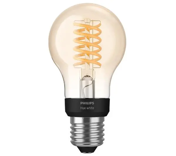 Philips Hue White Żarówka Filament E27 A60 (1 szt.)<p>Ta żarówka o tradycyjnym kształcie łączy w sobie wyjątkowy styl retro i najnowocześniejsze funkcje, które zapewnia technologia Philips Hue. Żarówka emituje ciepłe białe światło, którego natężenie może być dostosowywane za pomocą Bluetooth.</p>Nowoczesne funkcje w stylu retro.<p>Inteligentna żarówka LED łączy w sobie najnowocześniejszą technologię Philips Hue z wyjątkowym stylem retro. Jej przezroczysta kula oraz żarnik w stylu żarówki Edisona stworzą wyjątkową atmosferę w każdym pomieszczeniu.</p>Łatwe sterowanie dzięki połączeniu Bluetooth.<p>Skorzystaj z aplikacji Philips Hue Bluetooth i w pełni kontroluj oświetlenie w swoim domu. Philips Hue Bluetooth pozwala w szybki i prosty sposób sterować aż 10 punktami światła w jednym pomieszczeniu. Aplikacja dostępna jest dla telefonów z systemami Andoid i iOS.</p>Steruj oświetleniem za pomocą głosu.<p>Inteligentne oświetlenie Philips Hue można zsynchronizować z kompatybilnym urządzeniem Google Nest lub Amazon Echo, a następnie sterować nim za pomocą komend przy użyciu Alexy lub Asystenta Google. Wybierz, czy chcesz sterować głosowo oświetleniem w całym pokoju, czy pojedynczym punktem światła.</p>Dopasuj białe światło do swoich potrzeb.<p>Dzięki inteligentnym żarówkom i lampom Philips Hue wypełnisz swoje wnętrze przyjemnym białym światłem. Prosta w obsłudze funkcja przyciemniania pozwoli idealnie dopasować oświetlenie do Twoich potrzeb.</p>Rozbuduj system oświetlenia o możliwość inteligentnej konfiguracji dzięki mostkowi Hue.<p>Podłącz swoje inteligentne oświetlenie do serca systemu Hue – mostka Hue Bridge. Ustaw harmonogram dla swojego oświetlenia, regulatory czasowe, dodawaj i usuwaj z systemu punkty światła. Steruj oświetleniem z całego domu i spoza niego. *Mostek Hue Bridge sprzedawany jest oddzielnie.</p><p>System inteligentnego Philips Hue daje Tobie pełną kontrolę nad oświetleniem w domu jak i ogrodzie. Teraz możesz sterować oświetleniem za pomocą aplikacji zainstalowanej na Twoim telefonie i łączyć się z oświetleniem za pomocą mostka lub bezpośrednio przez Bluetooth.</p>