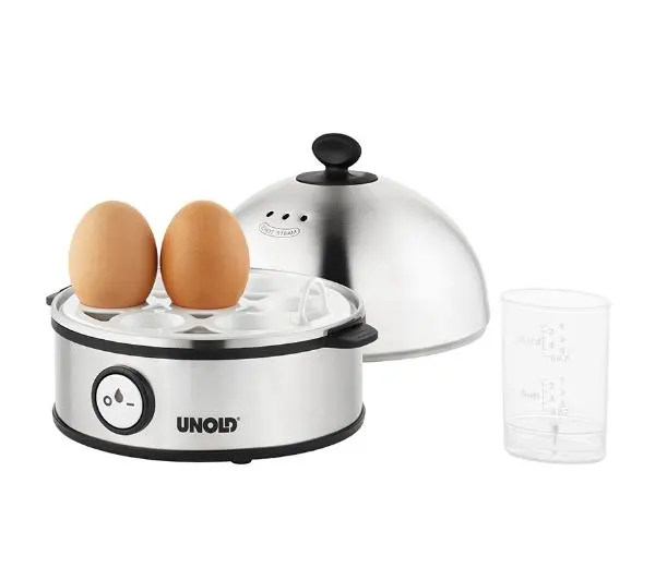 <h4>Jajka idealnie ugotowane</h4><h4>unold 38626</h4><h4>Właściwości unold 38626</h4><a></a><h5>JAJKA IDEALNIE UGOTOWANE</h5><p>Urządzenie do gotowania jajek umożliwia łatwe przygotowanie jednego lub kilku jaj. Dzięki równomiernej dystrybucji ciepła, jaja są jednakowo ugotowane i zawsze w takim stopniu, jak lubisz.</p><a></a><h5>NOWOCZESNY DESIGN</h5><p>Elegancka obudowa ze stali nierdzewnej sprawia, że urządzenie będzie pasować do każdej, nowoczesnej kuchni. Wraz z czarnymi elementami tworzy spójną, ponadczasową stylistykę.</p><a></a><h5>DO 7 JAJ NA RAZ</h5><p>Ten jajowar pozwala na jednoczesne przygotowanie do siedmiu jajek. Wszystkie będą jednakowo ugotowane - zgodnie z Twoimi preferencjami. W zależności od ilości jaj oraz żądanego stopnia ugotowania, należy w nim umieścić określoną ilość wody.</p><a></a><h5>OSZCZĘDZAJ MIEJSCE</h5><p>Kompaktowa konstrukcja sprawia, że urządzenie zmieści się w większości kuchennych szafek lub będzie zajmować niewiele miejsca na kuchennym blacie.</p><a></a><h5>MIARKA W ZESTAWIE</h5><p>Do zestawu są dołączona jest miarka na wodę ze skalą ułatwiającą dobranie objętości wody do ilości jaj i żądanego stopnia ugotowania.</p><a></a><h5>SYGNAŁ DŹWIĘKOWY</h5><p>Po wykorzystaniu wody niezbędnej do ugotowania jaj, urządzenie poinformuje o tym za pomocą sygnału dźwiękowego.</p>