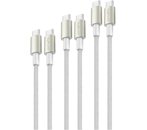 Kabel 4smarts PremiumCord USB-C 60W 0,5m+1,5m+3m Biały