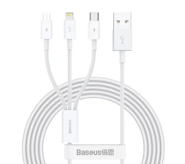 Kabel Baseus 3w1 Superior Series 3,5A, 1,2m Biały