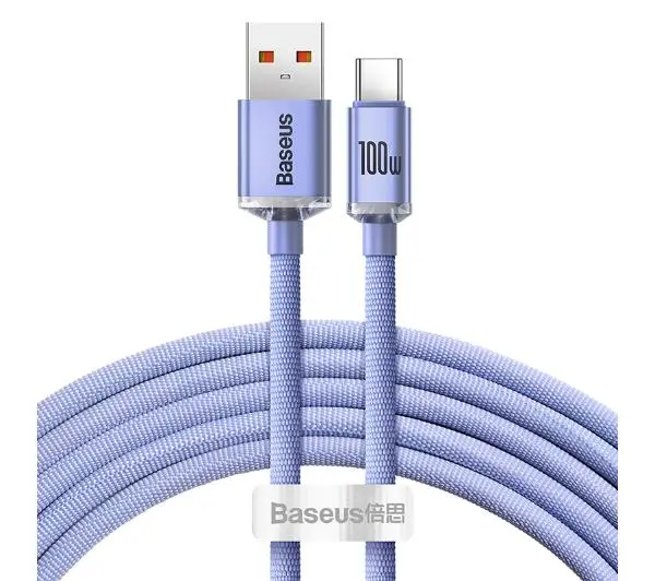 Kabel Baseus USB-C Crystal 5A 1,2 m Fioletowy