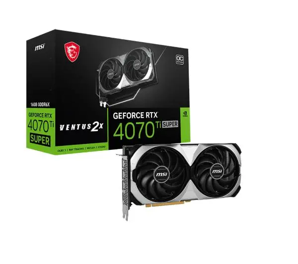 <h2>MSI GeForce RTX 4070 Ti Super Ventus 2X OC</h2>Karta graficzna MSI GeForce RTX 4070 Ti Super Ventus 2X OC to urządzenie, które warto wykorzystać w komponowaniu swojego gamingowego setupu. Wydajny system chłodzenia, wykorzystanie technologii NVIDIA DLSS 3, a także Ray Tracing 3 Gen to wszystko, czego od karty graficznej może potrzebować gracz! NVIDIA DLSS 3 generuje płynny obraz bez utraty jakościRay Tracing 3 Gen odpowiada za doskonałe efekty światłocienia i realizm planszyZmodernizowana konstrukcja wentylatorów TORX FAN 4.0 skutecznie odprowadza ciepło Technologia Airflow Control dba o maksymalną efektywność systemu chłodzeniaCiepłowody Core Pipe skutecznie odprowadzają ciepło do radiatoraTechnologia Zero Frozr zatrzymuje wentylatory, gdy temperatura karty graficznej jest wystarczająco niska<h2>Poznaj kartę graficzną MSI GeForce RTX 4070 Ti Super Ventus 2X OC</h2> Wydajność na medalTechnologia DLSS, stworzona przez markę NVIDIA, wciąż cieszy się popularnością, obecnie w wersji DLSS3. Jej obecność w urządzeniu MSI GeForce RTX 4070 Ti Super Ventus 2X OC pozwala na zwiększenie liczby klatek generowanych w ciągu sekundy, a co za tym idzie – wytwarza płynny obraz najwyższej jakości, porównywalny do tego, który jest uzyskiwany w rozdzielczości natywnej. Ray Tracing Ray Tracing renderuje grafikę komputerową tak, by symulowała sposób, w jaki w ciągu dnia naturalnie przemieszcza się światło. Efekt? Jeszcze bardziej realistyczny i wciągający obraz! MSI GeForce RTX 4070 Ti Super Ventus 2X OC wykorzystuje Ray Tracing najnowszej, 3. generacji, co gwarantuje prawdziwie niezapomniane wrażenia! Siła pracy zespołowejŁopatki wentylatorów TORX FAN 4.0, które odpowiadają za chłodzenie radiatora, pracują w parach. Ich działanie jest tym samym wzmocnione. Taki system pozwala stworzyć doskonały poziom koncentracji ciśnienia napływającego do wentylatorów powietrza, a co za tym idzie – skuteczniej schładzać radiator. Pełna ochronaBardzo mocną stroną MSI GeForce RTX 4070 Ti Super Ventus 2X OC jest odpowiednie chłodzenie. Jednym z jego elementów jest kontrola przepływu powietrza. Pozwala na nią technologia Airflow Control, która dba o to, by strumień powietrza kierowany był dokładnie tam, gdzie jest potrzebny. Urządzenie może w ten sposób zmaksymalizować efektywność systemu chłodzenia. Ciepłowody Core PipeSkuteczne chłodzenie jest kluczowe dla właściwej pracy karty graficznej. Dlatego w opisywanym podzespole zadbano nie tylko o wentylatory, ale też precyzyjnie wykonane ciepłowody Core Pipe. Pozostają one w kontakcie z procesorem graficznym karty graficznej MSI GeForce RTX 4070 Ti Super Ventus 2X OC i rozprowadzają ciepło na całej długości odprowadzającego je radiatora. Bez zbędnego hałasuProducent opisywanego urządzenia wie, jak uciążliwy bywa hałas generowany przez chłodzenie karty graficznej. Dlatego zastosował w swoich produktach sprytne rozwiązanie, a mianowicie technologię Zero Frozr. To ona sprawia, że wentylatory schładzające zatrzymują się w chwili, gdy temperatura procesora jest wystarczająco niska.<h2>Zawartość opakowania MSI GeForce RTX 4070 Ti Super Ventus 2X OC</h2>W opakowaniu Karta graficzna Kabel zasilający Instrukcja obsługiMSI – marka godna zaufaniaOd graczy dla graczyWysoka jakość doceniana przez profesjonalnych graczySpecjaliści w produktach gamingowychMarka specjalizująca się w produkcji sprzętu komputerowego dla graczyMarka założona w 1986 rokuDoświadczenie, które owocuje wyjątkowymi produktami <h4>GeForce RTX z serii 40</h4><h3>WIĘCEJ NIŻ SZYBKA</h3><p>Układy graficzne NVIDIA® GeForce RTX™ z serii 40 dla graczy i twórców są więcej niż szybkie. Napędzane są ultrawydajną architekturą NVIDIA Ada Lovelace, która zapewnia ogromny skok w zakresie wydajności, jak i opartej na SI grafiki. Ciesz się niezwykle realistycznymi wirtualnymi światami z ray tracingiem oraz grami z ultrawysokim poziomem FPS i najniższymi opóźnieniami. Odkryj nowe, rewolucyjne sposoby tworzenia i niespotykane przyspieszenie pracy.</p> <h4>SUPERszybkie. SUPERmocne.</h4><p>Nowe karty graficzne GeForce RTX™ z serii 40 SUPER otrzymały turbodoładowanie. To idealny czas, aby ulepszyć swój sprzęt i zdobyć supermoce.</p><ul> <li>GeForce RTX 4080 SUPER</li> <li>GeForce RTX 4070 Ti SUPER</li> <li>GeForce RTX 4070 SUPER</li></ul> <h3>Architektura NVIDIA Ada Lovelace</h3><h4>Zaprojektowane, aby dać Ci supermoce</h4><p>Nowe multiprocesory strumieniowe Nawet dwukrotnie wyższa wydajność i energooszczędność</p><p>Rdzenie Tensor czwartej generacji Nawet czterokrotnie wyższa wydajnośćz DLSS 3 – w porównaniu z klasycznym renderingiem</p><p>Rdzenie RT trzeciej generacji Nawet dwukrotnie wyższa wydajność ray tracingu</p><ul> <li> <h4>Najnowocześniejsze układy graficzne</h4> <p>Architektura NVIDIA Ada Lovelace</p> </li> <li> <h4>Realistyczna i wciągająca grafika</h4> <p>Rdzenie dedykowane ray tracingowi</p> </li> <li> <h4>Wydajność akcelerowana SI</h4> <p>NVIDIA DLSS 3</p> </li> <li> <h4>Responsywność, która daje wygraną</h4> <p>Platforma NVIDIA Reflex o niskich opóźnieniach</p> </li> <li> <h4>Stworzone z myślą o strumieniowaniu</h4> <p>Enkoder NVIDIA</p> </li> <li> <h4>Głos i wideo wzbogacone SI</h4> <p>RTX Video Super Resolution oraz NVIDIA Broadcast</p> </li> <li> <h4>Podkręć swoją kreatywność</h4> <p>NVIDIA Studio</p> </li> <li> <h4>Wydajność i niezawodność</h4> <p>Sterowniki Game Ready oraz Studio</p> </li></ul> <h3>Ray tracing</h3><h4>Hiperrealistyczna. Hiperszybka.</h4><p>Architektura Ada wyzwala całą potęgę ray tracingu, który symuluje zachowanie światła w prawdziwym świecie. Dzięki mocy obliczeniowej układów RTX z serii 40 i trzeciej generacji rdzeni RT możesz cieszyć się niezwykłą szczegółowością wirtualnych światów jak nigdy wcześniej.</p> <h3>NVIDIA DLSS 3</h3><h4>Maksimum FPS. Maksimum jakości. Z pot