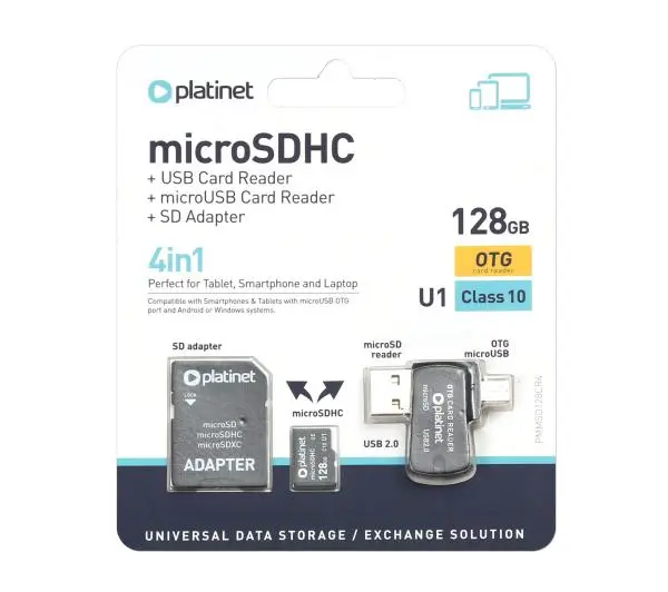 Karta pamięci Platinet Platinet 4w1 microSDHC 128GB + czytnik