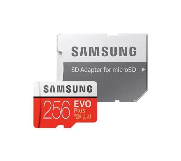 <h4>Samsung microSDXC EVO Plus256GB 100 MB/s Class 10</h4><p>Wodoszczelna karta microSDXC IPX7, rozszerzająca pamięć urządzeń o 256 GB i wyposażona w interfejs UHS-I, odczyt z prędkością 100 MB/s oraz adapter SD.</p><h4>Poznaj Samsunga microSDXC EVO Plus 256GB 100 MB/s Class 10</h4><a></a><h5>WIELE ZASTOSOWAŃ</h5><p>Seria kart EVO Plus to propozycja dla fotografów, graczy oraz miłośników filmów i seriali, którzy potrzebują dodatkowego miejsca na dane. Dzięki 256 GB pojemności przechowywanie ulubionych aplikacji, zdjęć i wideo w wysokiej jakości nie stanowi problemu.</p><a></a><h5>WSPARCIE WIDEO 4K UHD</h5><p>Wykorzystaj potencjał karty UHS-I (U3) do tworzenia oszałamiających nagrań 4K UHD – ultraszybki zapis z prędkością do 90 MB/s eliminuje zakłócenia czy spowolnienia podczas rejestrowania obrazu i dźwięku.</p><a></a><h5>PRAKTYCZNY ADAPTER SD</h5><p>Możliwości karty Class 10 z odczytem 100 MB/s zwiększa dołączony do zestawu adapter SD. Z jego pomocą bez przeszkód podłączysz Samsunga microSDXC EVO Plus do laptopa z czytnikiem kart pamięci, by błyskawicznie skopiować potrzebne dane.</p><a></a><h5>SZYBKI MONTAŻ</h5><p>Z pomocą uniwersalnego rozkładu pinów instalacja karty microSDXC jest niezwykle prosta – dodatkowa przestrzeń na dane jest widoczna tuż po osadzeniu urządzenia w kompatybilnym slocie smartfona, tabletu czy kamery sportowej.</p><a></a><h5>PROFESJONALNA KONSTRUKCJA</h5><p>Samsung microSDXC EVO Plus oferuje czteropoziomową ochronę przed utratą danych – karta jest odporna na zanurzenie w słonej wodzie (72 godziny w klasie IPX7) i znosi kontakt z ekstremalną temperaturą, polem magnetycznym i lotniskowym rentgenem.</p><a></a><h5>10 LAT GWARANCJI</h5><p>Korzystaj z karty Samsung microSDXC EVO Plus 256GB bez obaw o jej uszkodzenie czy nagły spadek wydajności – wysoką jakość urządzenia potwierdza 10 lat ograniczonej gwarancji producenta (gwarancja jest ograniczona dla wszelkiego rodzaju systemów nadzorowania, a gwarancja na adapter SD jest ograniczona do 1 roku).</p><h4>Samsung microSDXC EVO Plus 256GB 100 MB/s Class 10 z bliska</h4><h6>1 PŁYNNA PRACA</h6><p>Zadbaj o komfort codziennych czynności i przechowuj najważniejsze dane programów, zdjęcia, filmy i muzykę w jednym miejscu dzięki karcie o pojemności 256 GB.</p><h6>2 DOSKONAŁE PARAMETRY</h6><p>Wysokiej prędkości zapisu 90 MB/s towarzyszy odczyt na poziomie aż 100 MB/s, dzięki czemu karta sprawdza się zarówno w amatorskich, jak i profesjonalnych zastosowaniach.</p><h6>3 UNIWERSALNY INTERFEJS</h6><p>Wybierz kartę microSDXC z interfejsem UHS-I (U3) i adapterem SD, by wygodnie rozbudować pamięć kamery sportowej, lustrzanki cyfrowej, smartfona lub tabletu.</p><h4>W opakowaniu Samsunga microSDXC EVO Plus 256GB 100 MB/s Class 10</h4><h6>1Karta microSDXC</h6><h6>2Adapter SD</h6><h4>Samsung – marka godna zaufania</h4><p>10 lat gwarancji</p><p>Lider globalnego rynku smartfonów</p><p>Ponad 80 lat doświadczenia w rozwoju technologii</p>