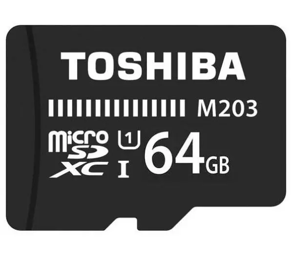 <h4>Toshiba MicroSDXC M203/EA 64GB</h4><p>Wstrząsoodporna i wodoszczelna karta pamięci microSDXC o klasie prędkości UHS-I / U1 i szybkości odczytu danych nawet 100 MB/s, wyposażona w adapter SD.</p><h4>Poznaj Toshiba MicroSDXC M203</h4><a></a><h5>DO 128 GB POJEMNOŚCI</h5><p>Karta jest dostępna w kilku pojemnościach. Największa z nich to aż 128 GB, na których pomieścisz zdjęcia, nagrania wideo, setki godzin ulubionej muzyki, a także dokumenty i bazy danych. Rozszerz pamięć wewnętrzną smartfona i nie martw się brakiem miejsca na nowe aplikacje!</p><a></a><h5>ARCHITEKTURA BICS FLASH™</h5><p>Zastosowanie innowacyjnej architektury BiCS FLASH™ pozwoliło zwiększyć pojemność karty, przy zachowaniu jej miniaturowych rozmiarów. Wielowarstwowa pamięć 3D oznacza powiększoną przestrzeń do przechowywania Twoich plików.</p><a></a><h5>BEZPIECZEŃSTWO DANYCH</h5><p>Wstrząsoodporna i wodoszczelna konstrukcja karty sprawia, że zapisane na niej dane są zawsze bezpieczne. Dzięki specjalnej ochronie nie stracisz swoich plików nawet w razie zachlapania, zalania czy upadku karty.</p><h4>Toshiba MicroSDXC M203 z bliska</h4><h6>1 SZYBKOŚĆ ODCZYTU DO 100 MB/S</h6><p>Dzięki zwiększonej prędkości odczytu karta pamięci Ultra High Speed pozwala na superszybkie przesyłanie plików do komputera.</p><h6>2 5-LETNIA GWARANCJA</h6><p>Marka Toshiba jest znana z bardzo wysokich standardów jakości, dlatego kartę pamięci objęto standardową, 5-letnią ochroną gwarancyjną.</p><h6>3 PRZEZNACZENIE: APARATY, KAMERY, TELEFONY KOMÓRKOWE</h6><p>Karta pozwala rozszerzyć pamięć wewnętrzną urządzeń mobilnych, takich jak telefon komórkowy czy tablet. Sprawdzi się też do zapisywania zdjęć i plików graficznych z aparatów fotograficznych i kamer.</p><h4>W opakowaniu Toshiba MicroSDXC M203/EA</h4><h6>1Toshiba MicroSDXC M203</h6><h6>2Adapter SD</h6><h4>Toshiba – marka godna zaufania</h4><p>5 lat gwarancji</p><p>Japońska technologia</p><p>Prawie 150 lat innowacji</p>