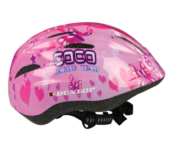<h3>Zaczarowany świat motyli</h3><p>Różowy kask dziecięcy Dunlop z uroczym motywem motyli to idealne połączenie bezpieczeństwa i bajkowego stylu. Żywe kolory i delikatne wzory sprawiają, że każdy mały rowerzysta poczuje się wyjątkowo i pewnie na drodze.</p><h3>Regulacja, która rośnie z dzieckiem</h3><p>Kask posiada wygodny system regulacji (48–52 cm), który pozwala idealnie dopasować obwód do głowy dziecka. Pasek pod brodą z łatwą regulacją zapewnia stabilność bez ucisku, nawet podczas dłuższej jazdy.</p><h3>Ultralekki i wygodny</h3><p>Kask waży zaledwie 170 g, dzięki czemu jest niemal niewyczuwalny w trakcie noszenia. Miękka wyściółka wewnątrz zapewnia komfort i wygodę – niezależnie od tego, czy dziecko jedzie na rowerze, hulajnodze czy rolkach.</p><h3>Swobodny przepływ powietrza</h3><p>Zintegrowane otwory wentylacyjne pozwalają na dobrą cyrkulację powietrza, co zapobiega przegrzewaniu się głowy nawet podczas aktywnej jazdy. Kask idealnie sprawdzi się w ciepłe, słoneczne dni.</p><h3>Ochrona zgodna z normami</h3><p>Kask został wykonany z trwałego PVC oraz pianki EPS, która skutecznie pochłania energię uderzenia. Spełnia europejską normę bezpieczeństwa CE EN 1078 – gwarantując ochronę podczas każdej aktywności.</p>