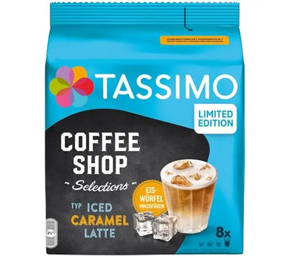 <ul> <li>Limitowana letnia edycja Coffee Shop Selections. Łączy w sobie pyszny smak karmelu z głębokim aromatem kawy. Kawa stworzona do podawania na zimno z kostkami lodu. Idealny sposób na ochłodę w gorące dni.</li> <li>8 kaw mlecznych</li> <li>8 kapsułek T DISCS: kawa mielona + 8 kapsułek T DISCS: ultrafiltrowany koncentrat ze śmietanki z cukrem o smaku karmelowym z cukrem, do przygotowania napoju kawowego</li> <li>Kapsułki pasują do wszystkich ekspresów Bosch Tassimo.</li></ul>Skład:śmietanka (z mleka) (30%), cukier, kawa mielona (21%), woda, koncentrat białek mleka, minerały mleka, sól, substancja zagęszczająca (E414), aromaty, regulator kwasowości (E331)Warunki przechowywania:Kawę przechowywać w suchym, chłodnym i zaciemnionym miejscu.