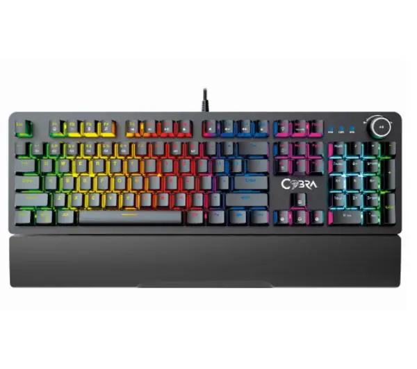 <h2>Cobra MK870 Raptor</h2>Klawiatura Cobra MK870 Raptor daje nieograniczone możliwości pod względem rozgrywek. Pełnowymiarowy rozmiar, szybki czas reakcji klawiszy oraz wielofunkcyjne pokrętło cyfrowe w połączeniu z ciekawym designem, jak i wytrzymałą konstrukcją, czyni z tego modelu doskonałe rozwiązanie dla graczy.Pełnowymiarowa klawiaturaSprawne rozgrywki, dzięki szybkiemu czasowi reakcji klawiszyKlawisze specjalnie przystosowane dla graczyWygodne w użyciu cyfrowe pokrętłoOryginalny designMożliwość zdemontowania każdego klawisza w celu dokładnego wyczyszczeniaTrwała i solidna konstrukcja<h2>Poznaj klawiaturę Cobra MK870 Raptor</h2> Klawiatura wielofunkcyjna dla każdegoCOBRA MK870 Raptor charakteryzuje się wielofunkcyjnością pozwalającą na wszechstronne zastosowanie. Urządzenie sprawdzi się zarówno dla zwykłych użytkowników podczas pracy biurowej, jak i rozrywki, a także dla graczy spędzających długie godziny przed komputerem. Dzięki klasycznemu układowi klawiszy obsługa klawiatury jest bardzo prosta i przyjemna. Wygodne będzie surfowanie po internecie oraz starcia w bardziej skomplikowanych rozgrywkach. Idealna dla graczy – poprawia czas reakcjiCOBRA MK870 Raptor jest zachwycająca nie tylko ze względu na design, ale również możliwości. Producent zadbał o lepsze działanie dzięki zastosowaniu przełączników Outemu Blue, które zapewniają szybszą reakcję przycisków. Warto także wspomnieć, że model ten odznacza się ponadprzeciętną żywotnością klawiszy na poziomie aż 50 milionów kliknięć. Dźwięczne klawiszeModel został wyposażony w funkcję, która sprawia, że klawisze mogą wydawać dźwięki przy każdym kliknięciu. Taka opcja jest bardzo atrakcyjna dla fanów gier, zwłaszcza przy takich rozgrywkach jak gry typu RTS. Jeśli zależy Ci na idealnej kontroli podczas pojedynku to z pewnością pełny N-Key Rollover pozwoli Ci to osiągnąć. Komfort użytkowyZ COBRA MK870 surfowanie po sieci, pisanie, przygotowywanie raportów czy granie będzie na wyższym poziomie. Niewątpliwym atutem jest wielofunkcyjne pokrętło, które pozwala dodatkowo na wygodne kontrolowanie poziomu podświetlenia klawiszy oraz głośności. Na wyposażeniu znalazły się również uniwersalne przyciski multimedialne umożliwiające bardzo szybką i sprawną obsługę np. plików audio i video. Design dla fanów gierWspaniały wygląd klawiatury jest jej dodatkowym atutem. Model ten dzięki podświetleniu RGB z 20 trybami działania pozwala na dostosowanie kolorów klawiszy do własnych potrzeb. COBRA MK870 Raptor będzie zatem znakomitym urozmaiceniem każdego biurka, a barwne oświetlenie sprzętu posłuży jako dodatkowe źródło światła. Wygodny sposób czyszczeniaPrzy zakupie sprzętu takiego jak klawiatura, warto pamiętać o jej czyszczeniu. Model COBRA MK870 Raptor pozwala na demontaż każdego z klawiszy i dokładne usunięcie wszelkich zabrudzeń także z podstawy. Dla ułatwienia do tego urządzenia dołączono zestaw chwytaków, które usprawniają cały proces. Solidna i wytrzymała konstrukcjaKlawiatura COBRA MK870 Raptor to również niesamowicie wytrzymała konstrukcja, która zniesie naprawdę wiele. Produkt jest odporny na zachlapania i drobne uszkodzenia. Dodatkowo aluminiowy backboard zapewnia większą sztywność, a zatem jeszcze lepszą stabilność podczas grania.Zawartość opakowania klawiatury Cobra MK870 RaptorW opakowaniu Klawiatura Cobra MK870 Raptor Kabel USB Instrukcja obsługiCobra – marka godna zaufaniaPolski kapitałProdukcja w 100% w oparciu na polskiej myśli technologicznejWysoka jakość produktówWspółpraca z najlepszymi fabrykami w ChinachProdukt doceniany przez użytkownikówWiodący producent urządzeń gamingowych w Polsce