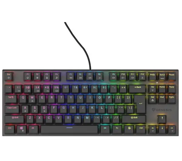 <p>Poznaj Genesis Thor 303 TKL - klawiaturę mechaniczną Hot Swap, która pozwoli Ci wymienić przełączniki Outemu w łatwy i szybki sposób. Wytrzymała obudowa, pełne podświetlanie PRISMO oraz wygoda na długie godziny. To właśnie Genesis Thor 303 TKL.</p> W KILKA SEKUND<p>Chcesz wymienić przełączniki w łatwy i szybki sposób? Technologia Hot Swap pozwoli Ci to zrobić w kilka sekund, a wszystko to bez konieczności trwałej mechanicznej ingerencji w konstrukcję. Pomoże Ci w tym dodatkowe, dołączone do zestawu narzędzie. Spersonalizuj Genesis Thor 303 TKL wedle własnego uznania i wejdź na wyższy poziom.</p> DOSKONAŁE PARAMETRY<p>Postaw na przełączniki Outemu Red, które cechują się dynamiką, punktem aktywacji wynoszącym zaledwie 2 mm oraz niewielką siłą wymaganą do rejestracji akcji (45 g). Zyskaj przewagę nad graczami korzystającymi z membranowych odpowiedników i góruj na polach bitew.</p> JESZCZE GŁADSZY RUCH<p>Nowa Thor 303 TKL to jeszcze lepsze stabilizatory, które dzięki wysokiej jakości smarowaniu gwarantują jeszcze gładszy ruch klawisza, obniżając tym samym poziom generowanego hałasu. Nie musisz też martwić się o żywotność przełączników. Wyróżniają się one specjalną osłoną przeciwkurzową, która chroni mechanizm.</p> STYLOWA I NOWOCZESNA<p>Wyróżnij swoje stanowisko. Pozwoli Ci na to stylowe podświetlenie RGB. Bez względu na to, czy grasz, czy poświęcasz się pracy - obok Genesis Thor 303 TKL nikt nie przejdzie obojętnie.</p> BEZ OGRANICZEŃ<p>Chcesz wykorzystać pełny potencjał Genesis Thor 303 TKL? Zrobisz to bez trudu z techniką N-Key Rollover, czyli pelnego Anti - Ghotsingu. Wciskaj dowolną ilość przycisków jednocześnie i zapomnij o problemach z poprawną i błyskawiczną rejestracją akcji. </p> TRWAŁOŚĆ NA LATA<p>Żywotność nawet 50 mln kliknięć - tak wytrzymałe są przełączniki Outemu Red, które znajdziesz w Genesis Thor 303 TKL. Lata intensywnej rozgrywki zapewnią Ci także klawisze wykonane w technice "Double Injection". W połączeniu z metalową ramą gwarantuje to jakość, na którą zasługuje każdy gracz.</p> APLIKACJA STERUJĄCA<p>Genesis Thor 303 TKL współpracuje z nowoczesnym oprogramowaniem, dzięki któremu bez trudu spersonalizujesz jej działanie. Twórz własne kombinacje, profile, przypisuj niestandardowe akcje do klawiszy. Wystarczy tylko kilka kliknięć.</p> KLAWISZE FUNKCYJNE<p>Wykorzystaj klawisze funkcyjne (F1 - F12) i miej kontrolę nad wszystkimi multimediami. Dzięki nim nie tylko zapauzujesz odtwarzaną muzykę bądź wyregulujesz głośność, ale też uruchomisz aplikacje niezbędne na co dzień.</p>