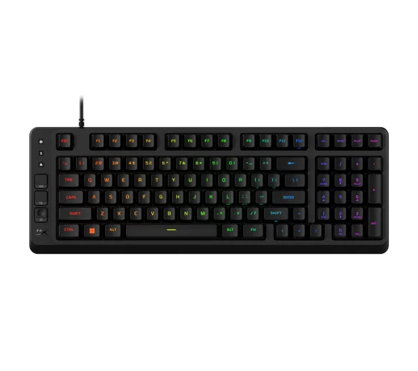 Klawiatura dla GraczyEve 1800Zacznij od optymalnej przestrzeniHyperX Eve 1800 to pełnowymiarowa klawiatura w kompaktowym układzie, która zapewnia więcej miejsca na słuchawki, mysz i inne akcesoria.Responsywne klawisze gamingowePrzełączniki membranowa w Eve 1800 zapewniają miękkie, przyjemne wciśnięcia z wyraźnym feedbackiem, a funkcje anti-ghosting i 12-klawiszowy rollover gwarantują niezawodność podczas rozgrywki.Dedykowane przyciski multimedialneSteruj głośnością, trybem gry i profilami za pomocą jednego dedykowanego przycisku.Podświetlenie RGB (Red, Green, Blue) w 10 strefach z pełną personalizacjąCiesz się dynamicznym, konfigurowalnym podświetleniem RGB, które podkreśli Twój styl i zsynchronizuje się z rozgrywką. Personalizacja przy użyciu oprogramowania HyperX NGENUITYKonfiguruj tryb gry, twórz makra oraz dostosowuj podświetlenie poszczególnych klawiszy i efekty świetlne.