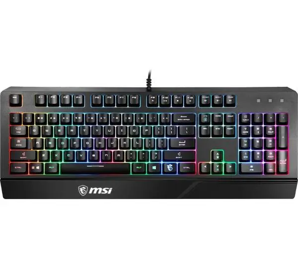 <h2>MSI Vigor GK20</h2>Klawiatura MSI Vigor GK20 to urządzenie, które zapewni Ci wygodną oraz wydajną pracę. Wszystko dzięki ergonomicznej konstrukcji nasadek klawiszy, możliwości personalizacji oraz odporności na zalanie. Dzięki temu urządzeniu Twoje sesje gamingowe będą jeszcze lepsze. Ergonomiczna konstrukcja nasadek klawiszy – jeszcze większa wygoda użytkowaniaTęczowe podświetlenie – atrakcyjny efekt wizualny, który poprawia wygląd klawiaturyKlawisze funkcyjne – szybki dostęp do panelu sterowania i najważniejszych funkcjiGumowe nóżki – klawiatura stoi stabilnie na biurku i zapewnia komfortową pracęAnti-Ghosting – natychmiastowa reakcja na wciśnięcie klawiszaOdporność na zalanie – sprzęt jest w pełni przygotowany do najcięższych sesji gamingowych<h2>Poznaj klawiaturę MSI Vigor GK20 </h2> Ergonomiczna konstrukcja nasadek klawiszyPraca z wykorzystaniem MSI Vigor GK20 jest teraz jeszcze wygodniejsza dzięki zastosowaniu ergonomicznej konstrukcji nasadek klawiszy. Oznacza to, że każdy klawisz posiada wklęsłą nasadkę, co zapobiega ześlizgiwaniu się palców oraz ułatwia trafianie w odpowiedni przycisk. Bez względu na to, czy grasz, piszesz, a może pracujesz – ta klawiatura gamingowa sprawdzi się podczas realizacji każdego zadania. Sprawdź już dzisiaj, na co stać ten niezwykły sprzęt. Tęczowe podświetlenieEfekt tęczowego podświetlenia to funkcja, która nie tylko poprawia estetykę urządzenia, ale pozwala również na wykorzystanie klawiatury jako statycznej lampki biurowej emitującej wiele kolorów. Co więcej, możesz regulować natężenie światła lub wyłączyć podświetlenie w zależności od nastroju oraz Twoich aktualnych potrzeb. Wprowadź do swojego pokoju całkowicie nowy styl i postaw na rozwiązanie MSI Vigor GK20 z tęczowym podświetleniem. Klawisze funkcyjneModel MSI Vigor GK20 charakteryzuje się możliwością wykorzystania klawiszy funkcyjnych do sterowania najważniejszymi aspektami urządzenia. Przy pomocy skrótów możesz regulować jakość podświetlenia, sterować odważanymi mediami oraz głośnością, a to wszystko bez konieczności przeklikiwania się przez gąszcz opcji w panelu sterowania. Nóżki gamingoweGumowe nóżki zastosowane w MSI Vigor GK20 to gwarancja braku poślizgu podczas najbardziej intensywnych sesji gamingowych. Bez względu na to, jak dynamiczna jest rozgrywka, możesz mieć pewność, że klawiatura stanowi solidną platformę, które nie będzie się przesuwać i utrudniać realizowanie zadań. Zyskaj stabilność i pewność podczas walki z przeciwnikami. Anti-ghostingTechnologia Anti-Ghosting, którą znajdziesz w MSI Vigor GK20, pozwala na uzyskanie maksymalnie krótkiego czasu reakcji po wciśnięciu przycisku. Zapomnij więc o wszelkiego rodzaju opóźnieniach negatywnie wpływających na Twoją rozgrywkę. Anti-Ghosting zadba o to, aby wszystko działo się niemal natychmiast, a czas reakcji był możliwie najkrótszy. Odporność na przypadkowe zachlapanieKlawiatura MSI Vigor GK20 to urządzenie w dużej mierze odporne na zachlapanie. *Nie należy zanurzać klawiatury w wodzie ani w żadnej innej cieczy. *Wodoodporność: Testy przeprowadzono w ograniczonych warunkach (maksymalnie 60 ml rozpryskanej cieczy), z wyłączeniem bloku klawiatury numerycznej i kontrolki w prawym górnym rogu. *Odporna na zachlapanie konstrukcja z otworem spustowym: Otwór pozwala na jak najszybsze odprowadzenie przypadkowo rozlanego płynu, co zmniejsza możliwość uszkodzenia klawiatury.<h2>Zawartość opakowania MSI Vigor GK20</h2>W opakowaniu KlawiaturaMSI – marka godna zaufaniaOd graczy dla graczy Wysoka jakość doceniana przez profesjonalnych graczySpecjaliści w produktach gamingowych Marka specjalizująca się w produkcji sprzętu komputerowego dla graczyMarka założona w 1986 rokuDoświadczenie, które owocuje wyjątkowymi produktami