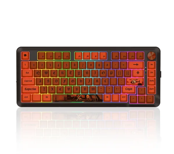 <h2>K681LK-RGB-PRO K4PUC21N0</h2><p>Redragon K4PUC21N0 PRO to bezprzewodowa klawiatura w układzie 75% inspirowana barwnym życiem Logana Kapuczino. Oferuje potrójną łączność — Bluetooth, 2.4 GHz oraz przewodową — dając pełną swobodę działania na różnych urządzeniach. Unikatowe połączenie kolorów oraz grafika przedstawiająca Logana nadają jej charakterystyczny, gangsterski klimat rodem z jego napadów w GTA. Dzięki przełącznikom Lion L, konstrukcji gasket-mount, hot-swapowi i pełnemu RGB (Red Green Blue) to sprzęt, który nie tylko wygląda jak gotowy do akcji, ale działa z precyzją i pewnością charakterystyczną dla stylu Logana.</p><h2>Potrójna łączność: Bluetooth, 2.4 GHz i przewód</h2><p>Klawiatura oferuje trzy tryby połączenia, dzięki czemu można swobodnie przełączać się między różnymi urządzeniami. Stabilne działanie gwarantuje niskie opóźnienia i niezawodność w każdej sytuacji.</p><h2>Przełączniki Lion L i konstrukcja gasket-mounted</h2><p>Połączenie przełączników Lion L z gasket-mounted zapewnia miękkie, sprężyste i precyzyjne działanie klawiszy. Taka konstrukcja zwiększa komfort podczas długich sesji pisania i grania.</p><h2>Podświetlenie RGB 16.8M i możliwość hot-swapu</h2><p>RGB 16.8M pozwala tworzyć dowolny klimat - od subtelnego po efektownie neonowy. Funkcja hot-swap umożliwia szybką wymianę przełączników bez lutowania, dając pełną swobodę personalizacji.</p><h2>Układ 75% z pokrętłem - pełna kontrola jak przy planowaniu skoku</h2><p>Kompaktowy układ pozwala zaoszczędzić miejsce bez rezygnacji z kluczowych funkcji. Dedykowane pokrętło umożliwia szybkie sterowanie głośnością i podświetleniem, a ergonomia układu sprawia, że obsługa klawiatury jest naturalna i płynna. Każde działanie wykonasz instynktownie, bez zbędnych przerw. Daje to poczucie kontroli na poziomie, którym mógłby pochwalić się sam Logan podczas planowania napadu.</p><h2>Przełączniki Lion L i gasket-mount - komfort i precyzja na wysokim poziomie</h2><p>Przełączniki Lion L zapewniają szybki, płynny i wyczuwalny skok, idealny do dynamicznego pisania i grania. Konstrukcja gasket-mount wygładza pracę klawiszy i tłumi wibracje, a taka konstrukcja gwarantuje cichą pracę niczym strzał z tłumikiem. Nawet przy długich sesjach klawiatura działa miękko i stabilnie. Każde naciśnięcie jest pewne i konsekwentne, co przekłada się na wysoką kulturę pracy.</p><h2>Potrójna łączność, hot-swap i styl inspirowany Loganem Kapuczino</h2><p>Klawiatura obsługuje trzy tryby połączenia - Bluetooth, 2.4 GHz i przewodowy - zapewniając swobodę i stabilność pracy na wielu urządzeniach. Hot-swap umożliwia wymianę przełączników bez lutowania, co pozwala dopasować klawiaturę do własnych preferencji. RGB 16,8 mln kolorów pozwala stworzyć klimat od spokojnych neonów po efektowne, gangsterskie akcenty. Pomarańczowo-bordowa estetyka nadaje jej unikatowy charakter. Obecność grafiki Logana Kapuczino sprawia, że wygląda jak element sprzętu idealnego do kolejnej brawurowej akcji.</p>