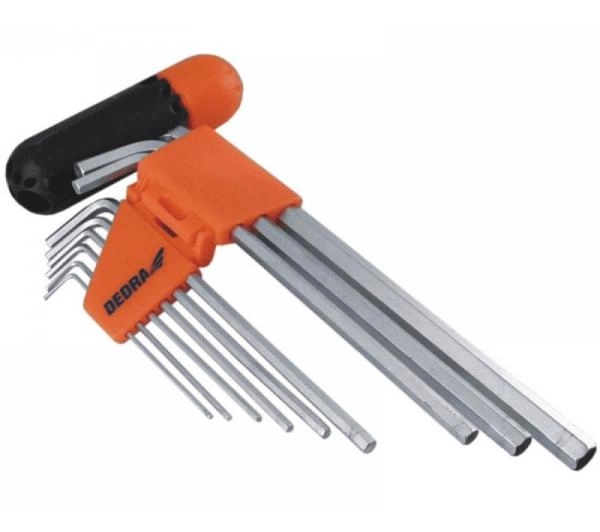 Klucze sześciokątne CrV - 9 sztdługość 215 mmrozmiary 1,5; 2; 2,5; 3; 4; 5; 6; 8; 10 mm