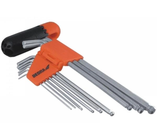 Klucze sześciokątne uchylne CrV, zestaw 9 sztdługość 215 mmrozmiary 1,5; 2; 2,5; 3; 4; 5; 6; 8; 10 mm